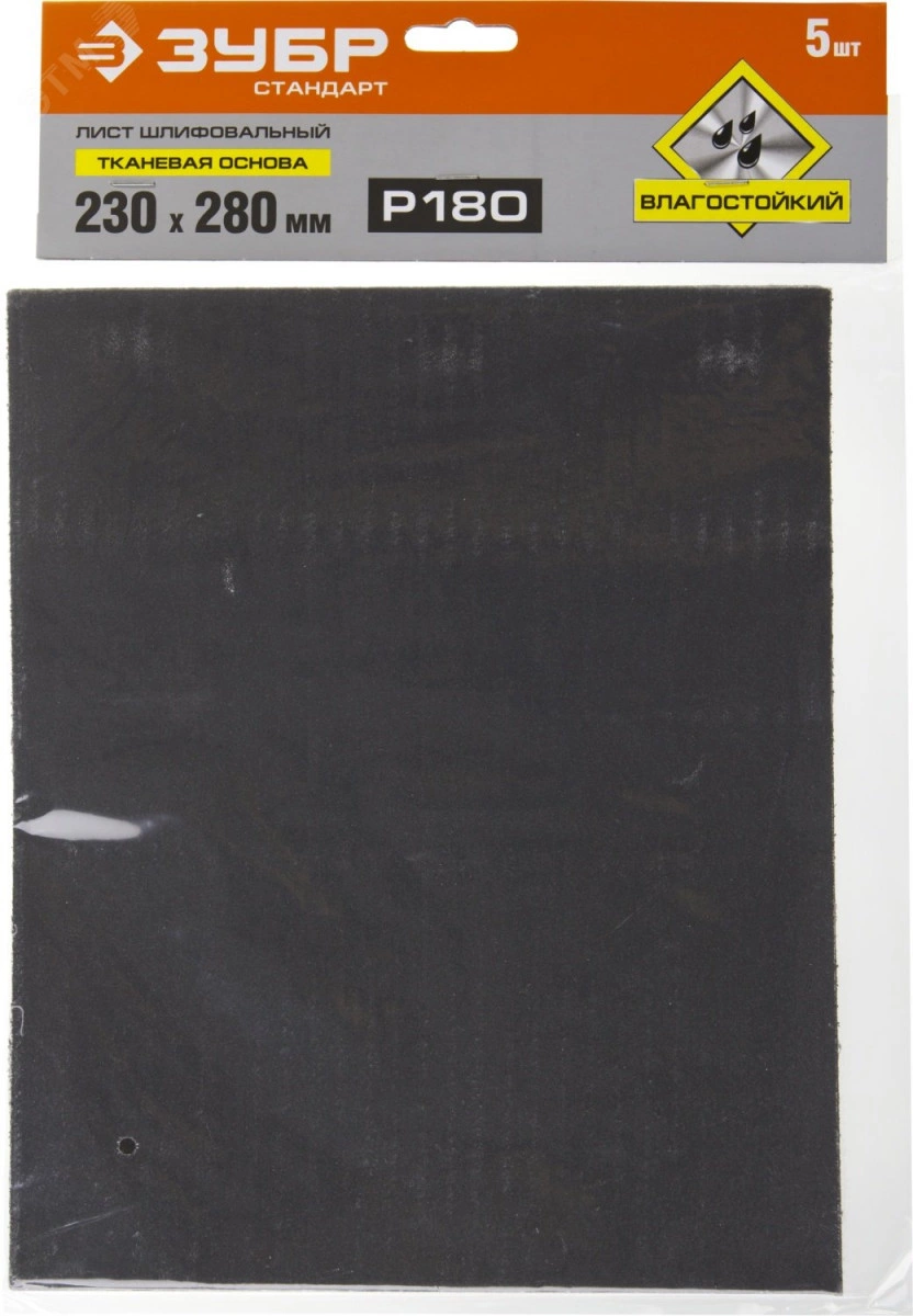 Лист шлифовальный ''СТАНДАРТ'' на тканевой основе, водостойкий 230х280мм, Р180, 5шт