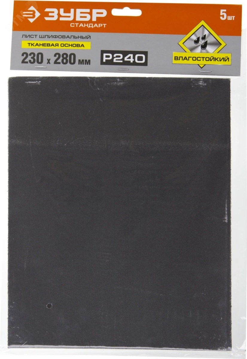 Лист шлифовальный ''СТАНДАРТ'' на тканевой основе, водостойкий 230х280мм, Р240, 5шт