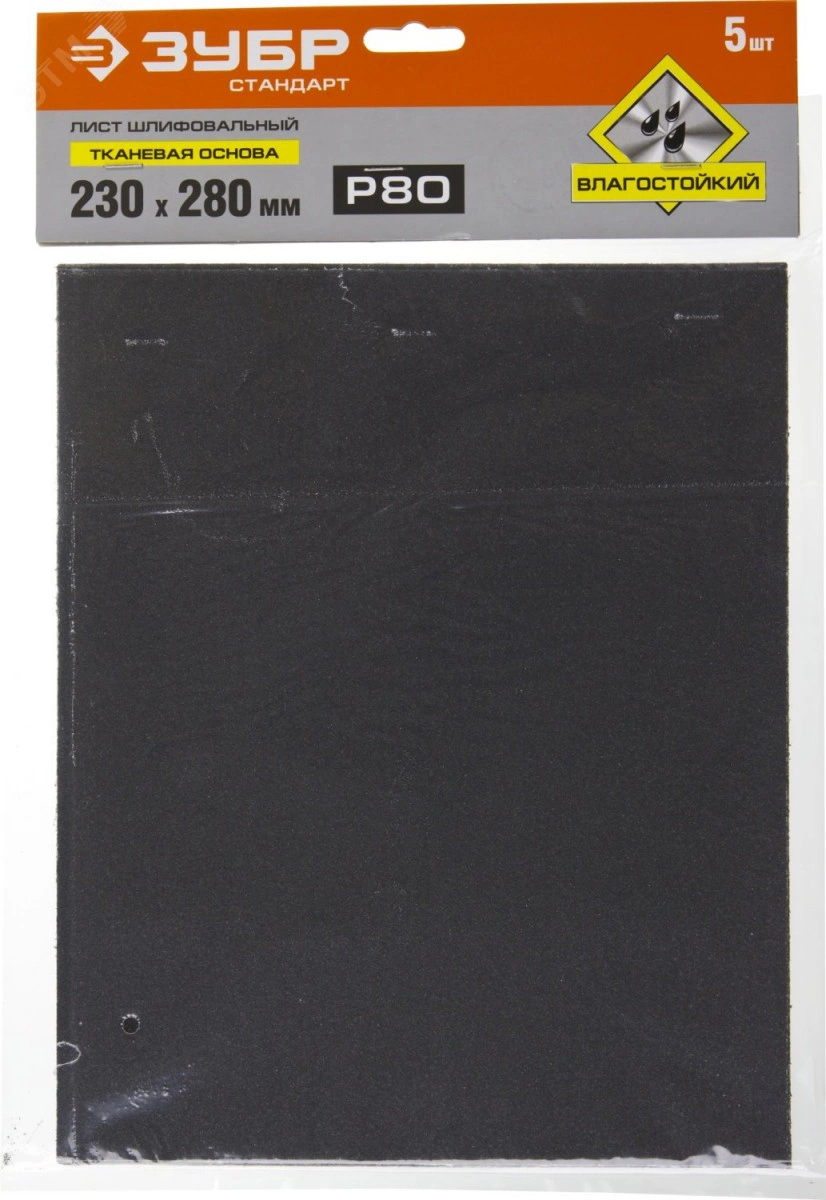 Лист шлифовальный ''СТАНДАРТ'' на тканевой основе, водостойкий 230х280мм, Р80, 5шт
