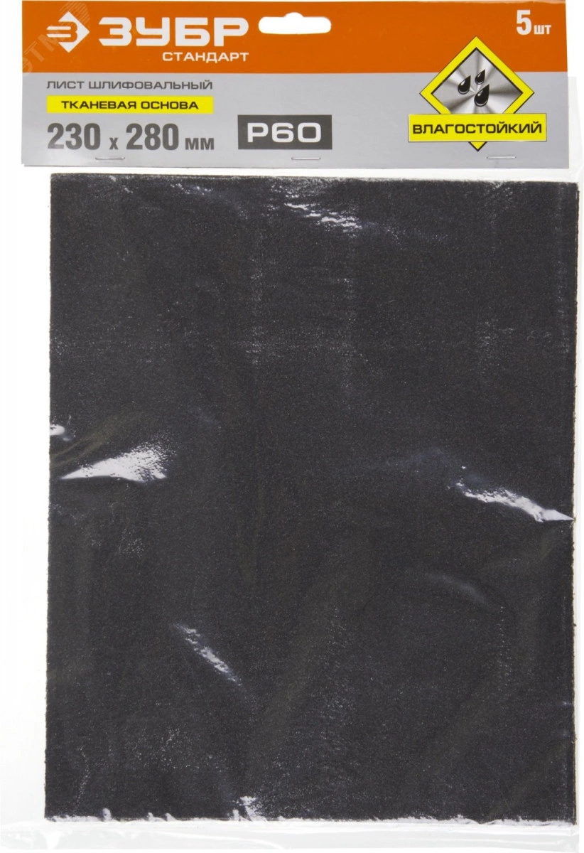 Лист шлифовальный ''СТАНДАРТ'' на тканевой основе, водостойкий 230х280мм, Р60, 5шт