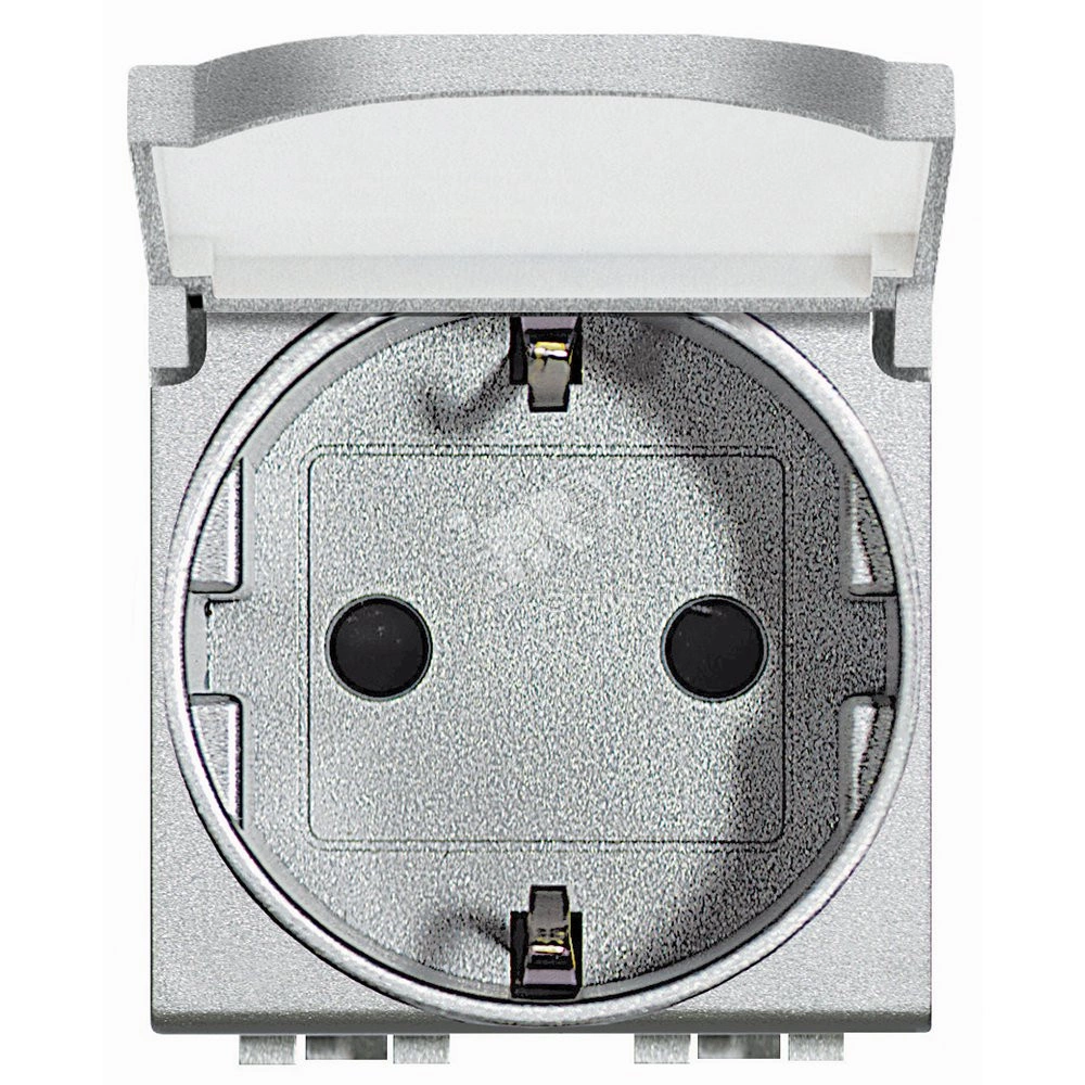 LL Розетка 2К+З с крышкой алюминий