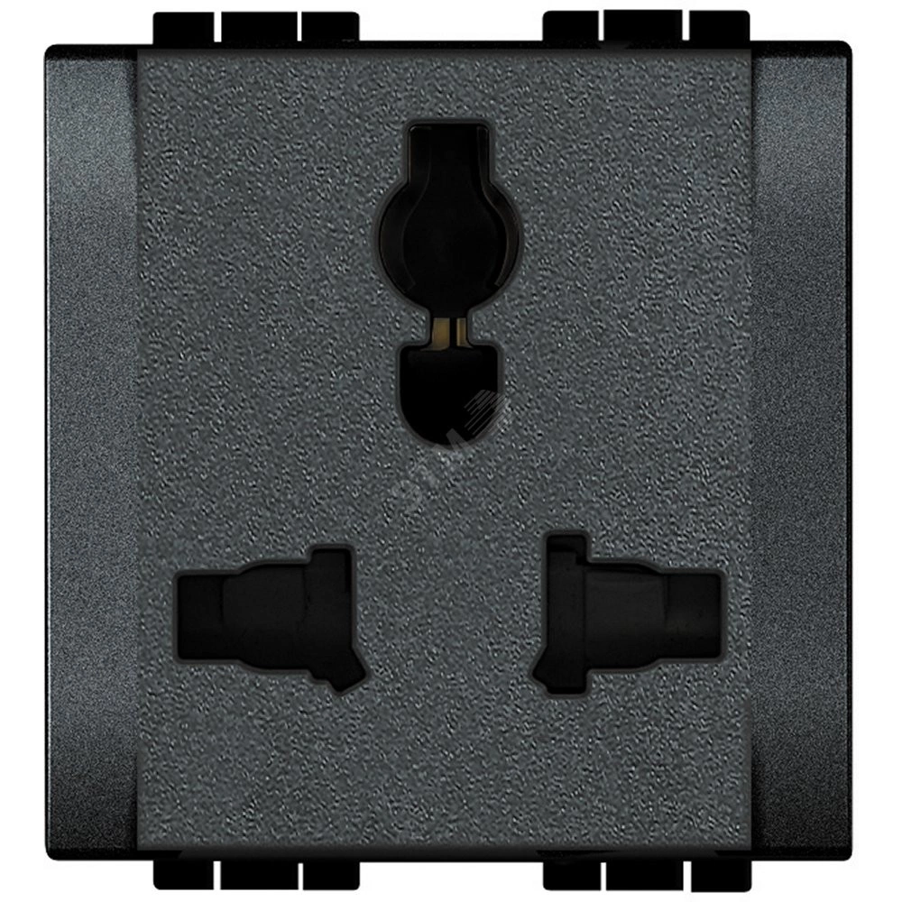 LL Розетка мультистандарт 5/6/10/13А 127В/250В 2 модуля антрацит