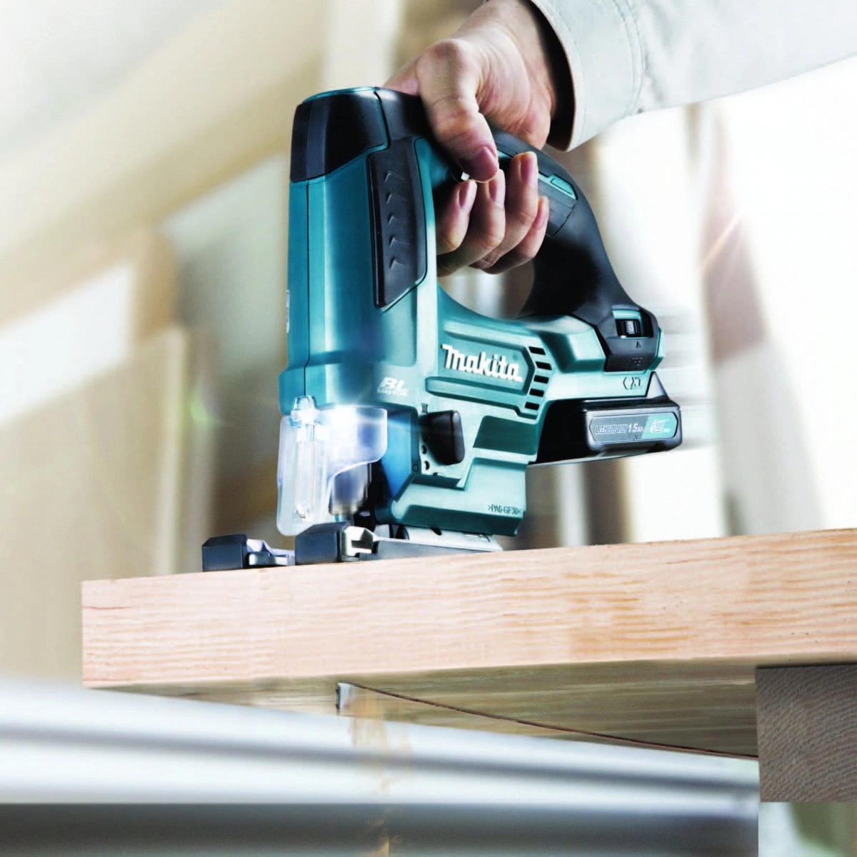 12В. 800 – 3 000 об/мин. Лобзик для прямого и фигурного реза древесины, стали, металла. Мощный лобзик с бесщеточным двигателем и 3 - х ступенчатым маятниковым ходом. Максимальная толщина дерева 90 мм, стали 10 мм. Наклон опорной плиты до 45 градусов. Подсветка рабочей зоны.