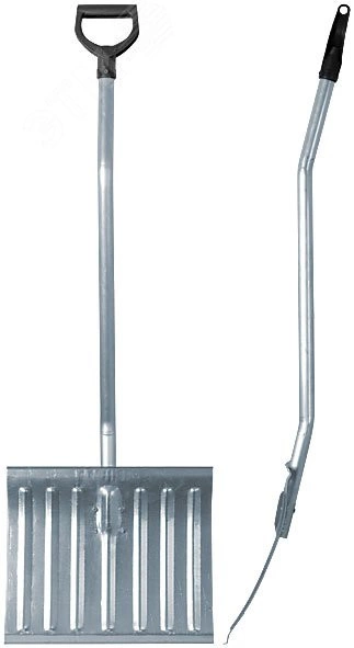 Лопата тротуарная стальная оцинкованная, с эргономичным алюминиевым черенком и V-ручкой. Толщина полотна 1 мм. Материал -сталь, алюминий, полипропилен.