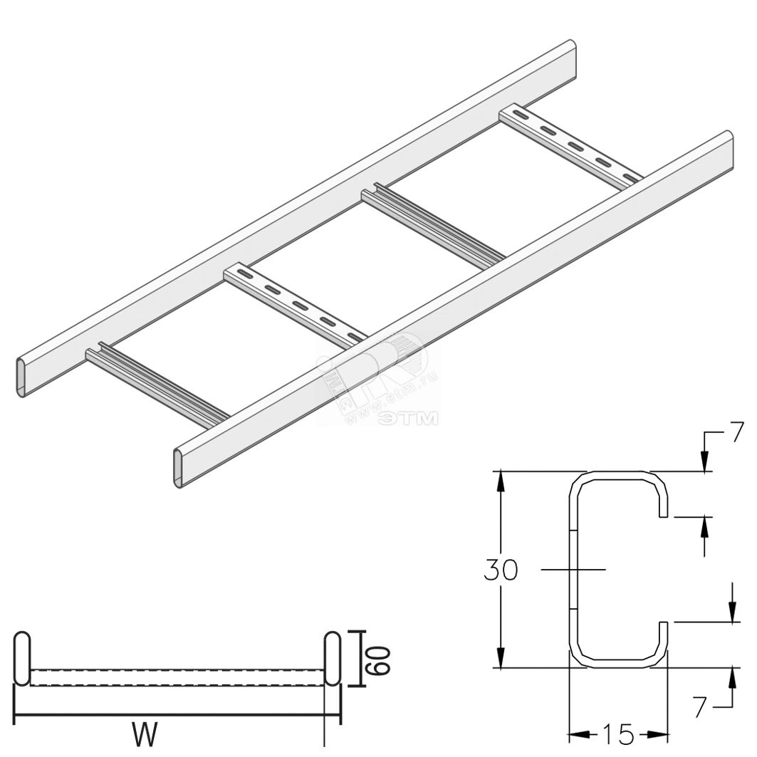 Лоток лестничный 600х150-1,5 L6000 мм усиленный кабельрост