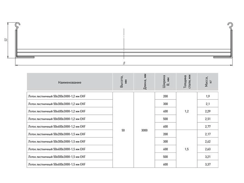 Полное описание: Лоток лестничный 50х100 L3000 1.5мм EKF LT50100-1.5