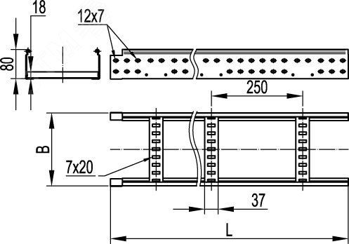 Лестничный лоток кабельрост 500х85х9000, толщина 2,0 мм, Сендзимир цинк