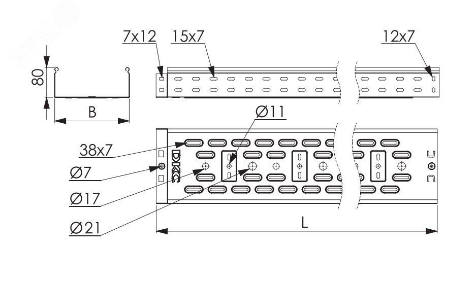 Лоток перфорированный 80х400х4000, 2,0 мм, цинк-ламельный