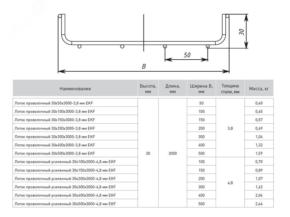 Лоток проволочный усиленный 30х400х3000-4,8мм