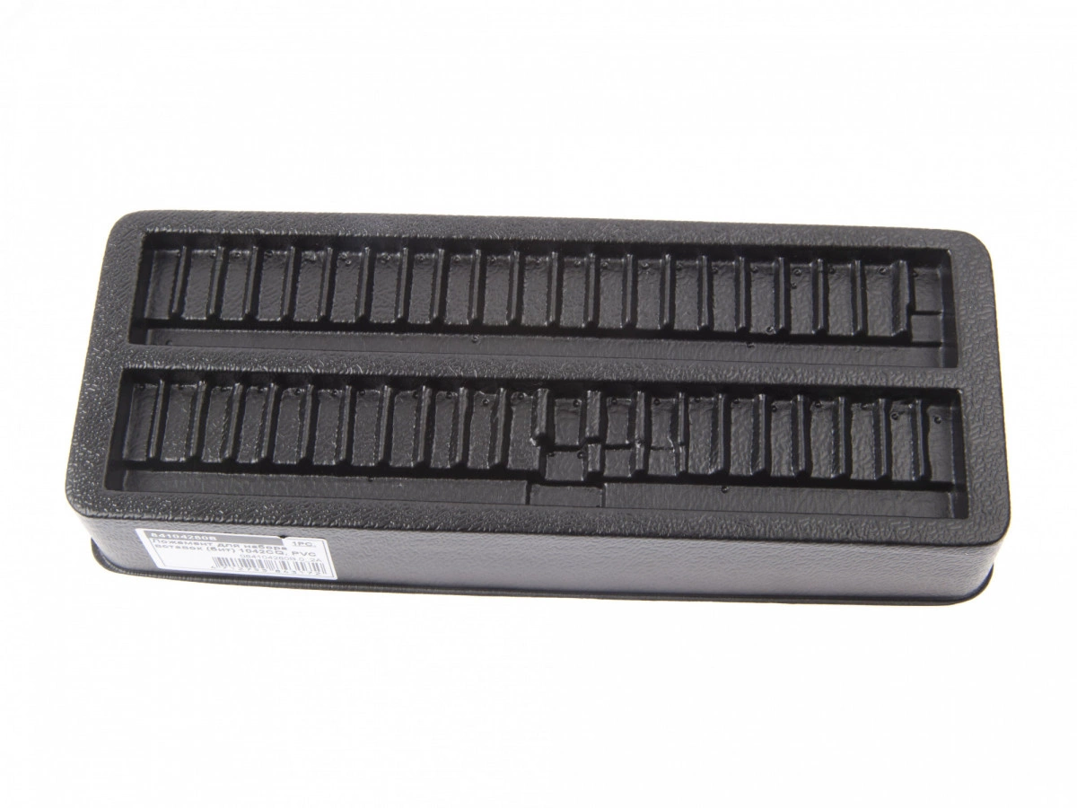 Ложемент для набора вставок бит выполнен из прочного пластика. Материал устойчив к несильным ударам, не крошится и не распадается при длительной эксплуатации. Для каждого инструмента есть отдельное углубление, что позволяет хранить его максимально эргономично.