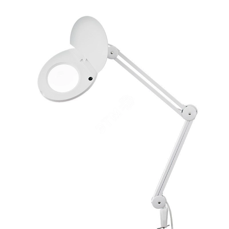Лупа на струбцине круглая настольная 3Х с подсветкой с крышкой, белая REXANT предназначена для визуального увеличения различных мелких предметов или их фрагментов. Она используется в косметологии, в тату-салонах, при выполнении ювелирных и радиомонтажных работ, при ремонте часов, в биологии и медицине, в швейном и вышивальном деле, для организации труда людей со слабым зрением, а также для других работ, где требуется дополнительное увеличение и подсветка рабочего поля. Такая оптическая система состоит из линзы, удобного пантографического механизма и бестеневой подсветки.