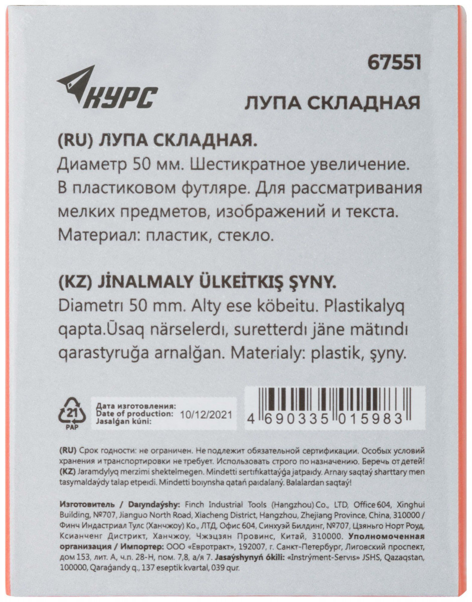 Лупа складная, 6 кратное увеличение
