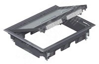 Лючок для 9 электроустановочных изделий серии Modul 45 в 3-х монтажных коробках GB2 для установки в системах кабельных каналов. С универсальным крепежным уголком. Защитная рамка для напольного покрытия, откидная крышка и кабельный вывод из полиамида. Выемка в откидной крышке для фрагмента напольного покрытия толщиной 5 мм.