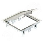 Лючок с ручкой для установки до 12 электроустановочных изделий серии Modul 45 в 3 универсальных коробках UT4. Из нержавеющей стали.