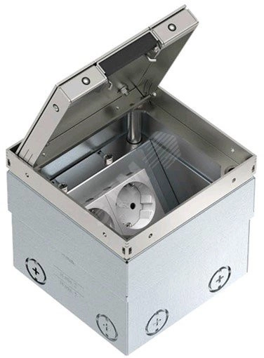 Полное описание: Лючок UDHome2 укомплектованный 2 розетки 2К+З (без выемки под н/п) сталь нерж. 140х140х110 мм