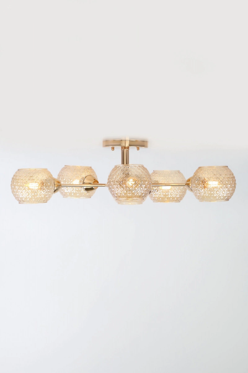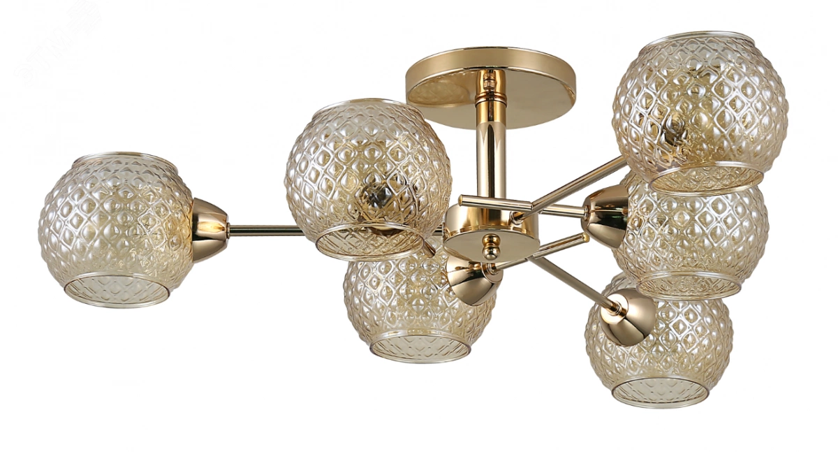 6-рожковые люстры Rivoli Amalia из металла и стекла выполнены в благородном золотом цвете. Гальваническое покрытие арматуры современной люстры Amalia сохранит ее безупречный вид в течение всего срока использования. Внимание привлекают рифленые плафоны этой люстры на потолок. Их мягкое тонирование создает уютное освещение. Выбирайте Rivoli Amalia в качестве люстры в гостиную, люстры в спальню или люстры на кухню. Люстры потолочные Amalia от итальянского бренда Rivoli удачное решение для большинства жилых комнат. Освещают площадь 18 м2, совместимы с самыми распространенными лампочками Е27 40 Вт. Эти универсальные люстры в стиле модерн стоит купить как в строгий кабинет, так и в жизнерадостную детскую. Хороши для классических интерьеров. Бюджетный способ воплотить в жизнь трендовые дизайнерские проекты. Часто люстры Amalia выбирают на кухню для создания качественного равномерного света.