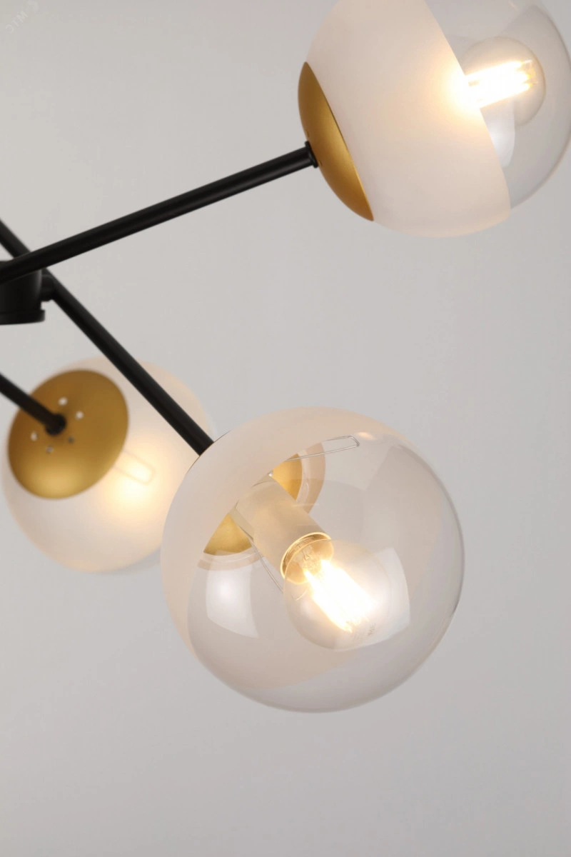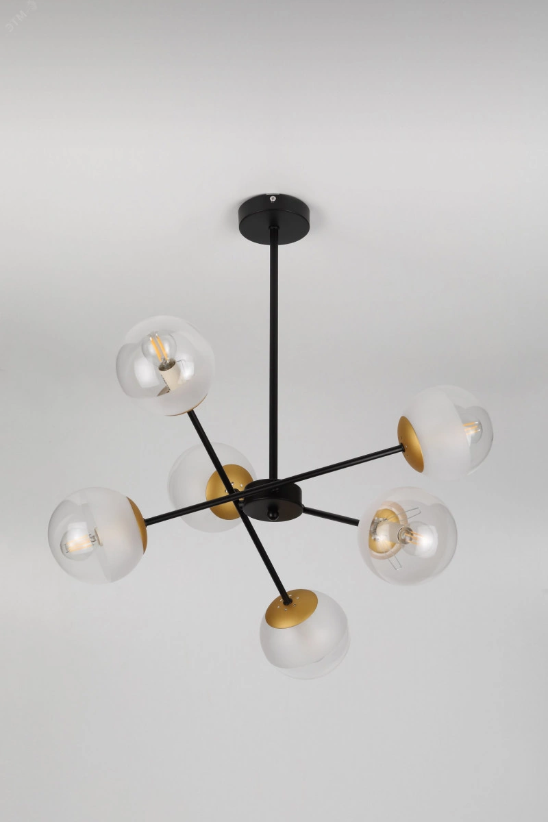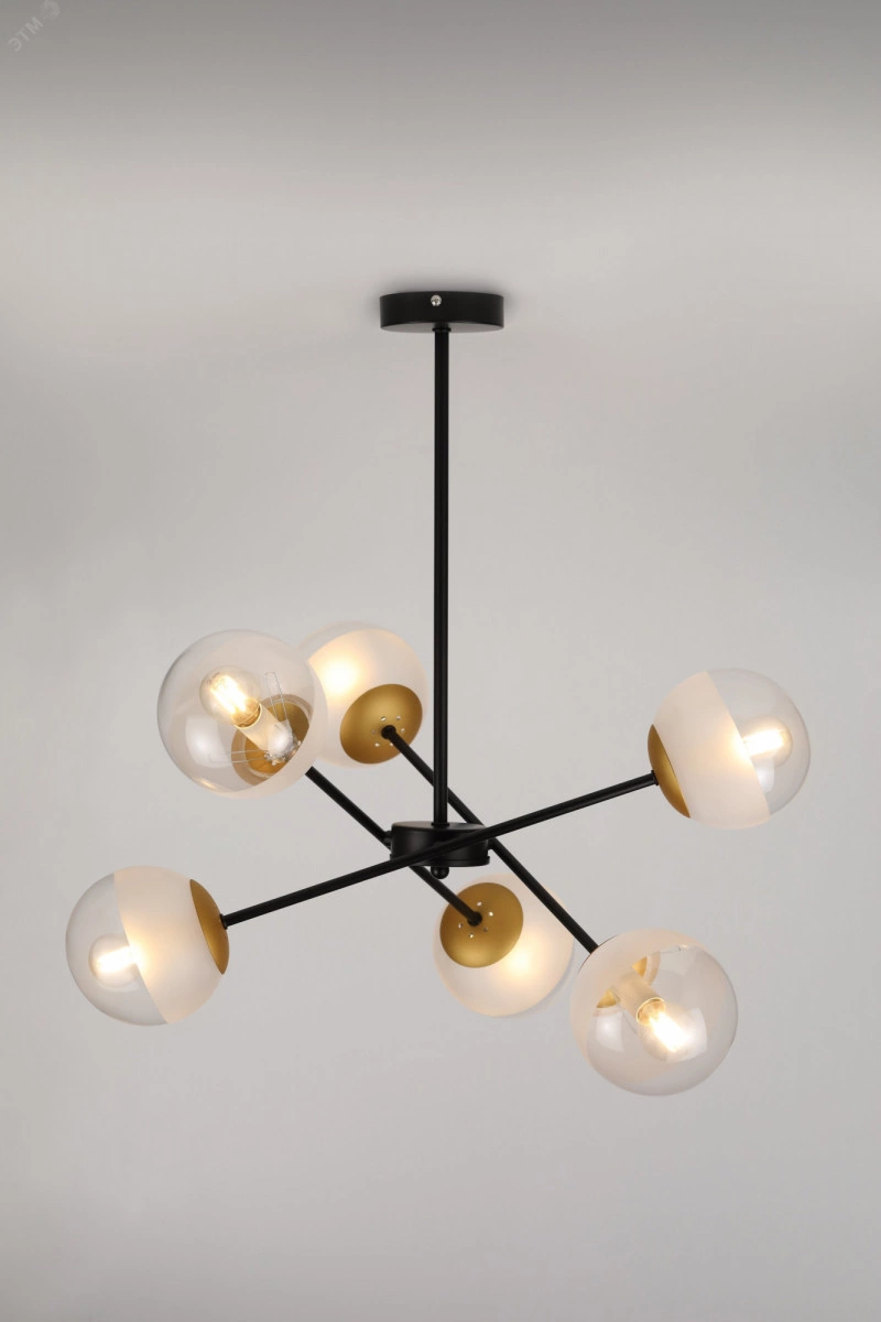Серия Areta уравновесит интерьер своими идеальными комбинациями. Смело соединение матового и прозрачного для уникального оформления и яркого освещения. Второе гармоничное сочетание тандем чёрного и золотого уже стало новой классикой. Коллекция представлена потолочной люстрой на 6 ламп.