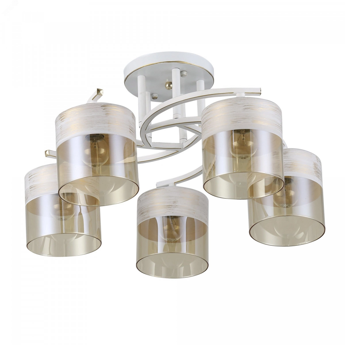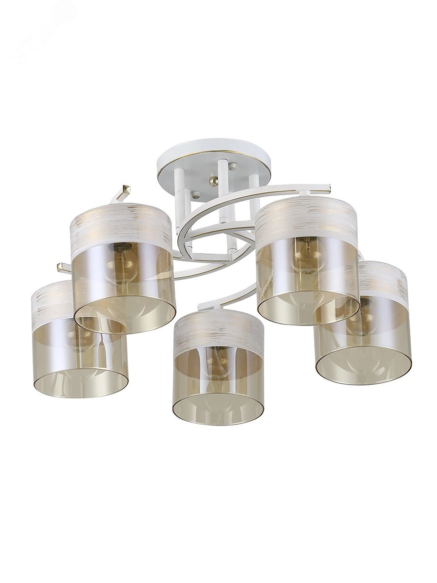 Rivoli Constancia - аккуратная светлая люстра в гостиную. Выполнена в стиле модерн, однако отлично подходит для интерьеров в скандинавском стиле, в стилях прованс, кантри. Металлический корпус люстры имеет красивое окрашивание в белом и золотом цветах. Техника декоративного состаривания создает в доме уютное спокойное настроение. Люстры потолочные Conctancia от итальянских дизайнеров изготовлены из качественных и прочных материалов. Стеклянные плафоны мягко тонированы в золотистый оттенок и приятно рассеивают свет. Такие люстры не только украшают ваш потолок, но и формируют комфортное для глаз освещение. Приятный дизайнерский бонус белый ободок в верхней части каждого плафона. Освещаемая площадь этой люстры с 5 плафонами - 15 м2. Подходят лампы Е27 40 Вт, в том числе экономичные светодиодные аналоги. Размер люстры - 500*500*260 мм. Вы оцените ее доступную цену и стильный внешний вид.