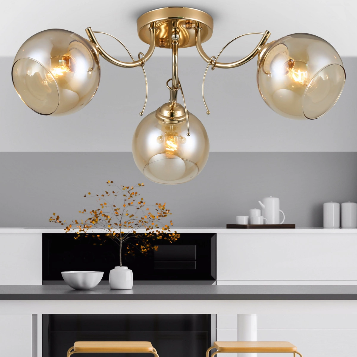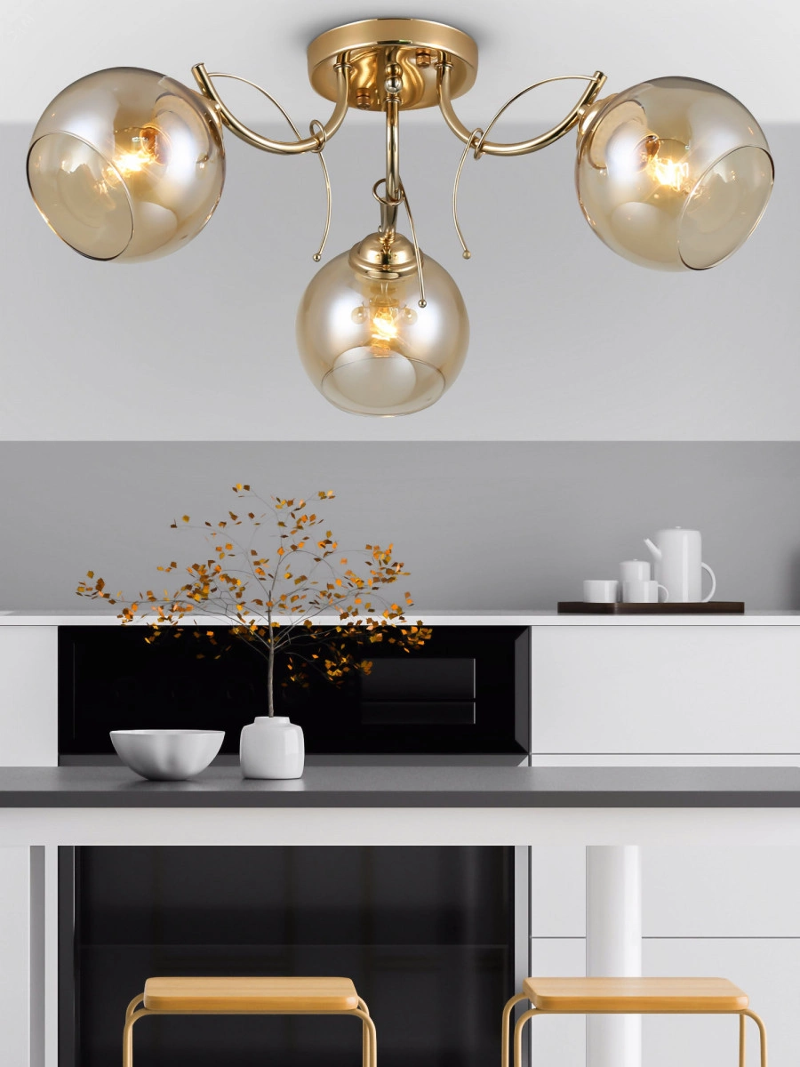 Rivoli Elli элегантные люстры от итальянских дизайнеров. Отличаются мягкой тонировкой стеклянных плафонов и утонченной арматурой золотого цвета. Изюминкой люстр на потолок Elli стали декоративные ветки на корпусе. Флористические мотивы беспроигрышное решение как для традиционного, так и для современного интерьера. Люстры потолочные Elli выпускаются в трех вариантах на 3, 5 и 8 ламп. Источники света Е27 40 Вт. Подходят любые лампочки обычные, светодиодные, декоративные.3-рожковые люстры Elli удачны в небольшую гостиную, стоит купить эти красивые люстры в малогабаритную кухню или в прихожую. Теплое золото создает позитивное настроение, эргономично расположенные лампы хорошо освещают площадь 9 м2.