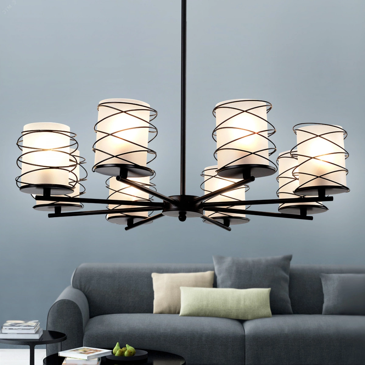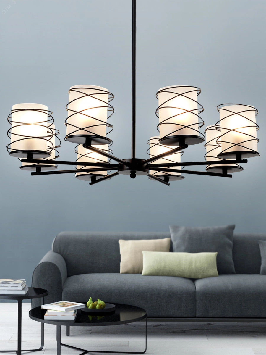 Люстры Rivoli Gerlinde с 8 плафонами прекрасно подойдут для освещения больших помещений. Освещаемая площадь от 24 м2. Современный дизайн этих люстр на потолок делает их актуальными для большинства модных интерьеров лофт, кантри, скандинавский, ретро, минимализм. Матовые плафоны с эффектом инея элегантно обрамлены тонкой металлической проволокой. Их держат лаконичные черные рожки выверенной формы. Корпус создан методом высокоточной лазерной сварки, за счет этого люстры потолочные Gerlinde выглядят аккуратно и служат долго. Высота подвеса люстры 470 мм. Патроны рассчитаны под распространенные лампы Е27 мощностью 40 Вт вы без труда подберете источники света. Подходят обычные лампочки или энергоэффективные светодиодные. Купить красивые и качественные люстры в спальню, гостиную, на кухню, в студию или загородный дом теперь можно по доступной цене.