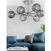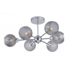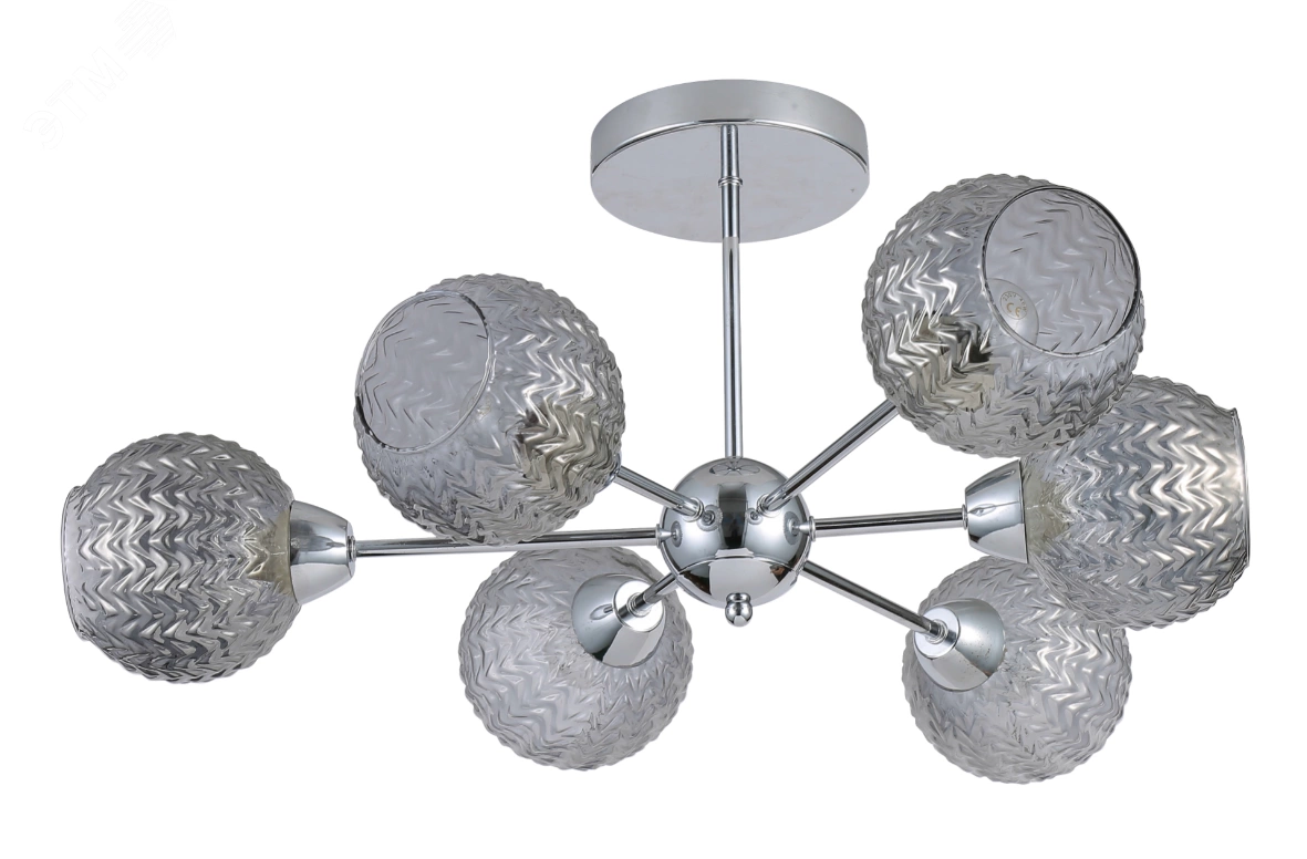 Подвесные люстры с дымчатыми плафонами и хромированной арматурой порадуют своим качеством и оригинальным дизайном. Стекло этой красивой люстры отличается креативным рифлением, металл имеет стойкое гальваническое покрытие. Данная модель применяется с 6 лампами Е27 40 В. Рожки разной длины направлены во все стороны, что исключает затемнение углов комнаты. Эти яркие люстры осветят 18 м2. Такие люстры подойдут на кухню в стиле модерн. Универсальность их применения обеспечена лаконичностью форм и традиционным оформлением плафонов.