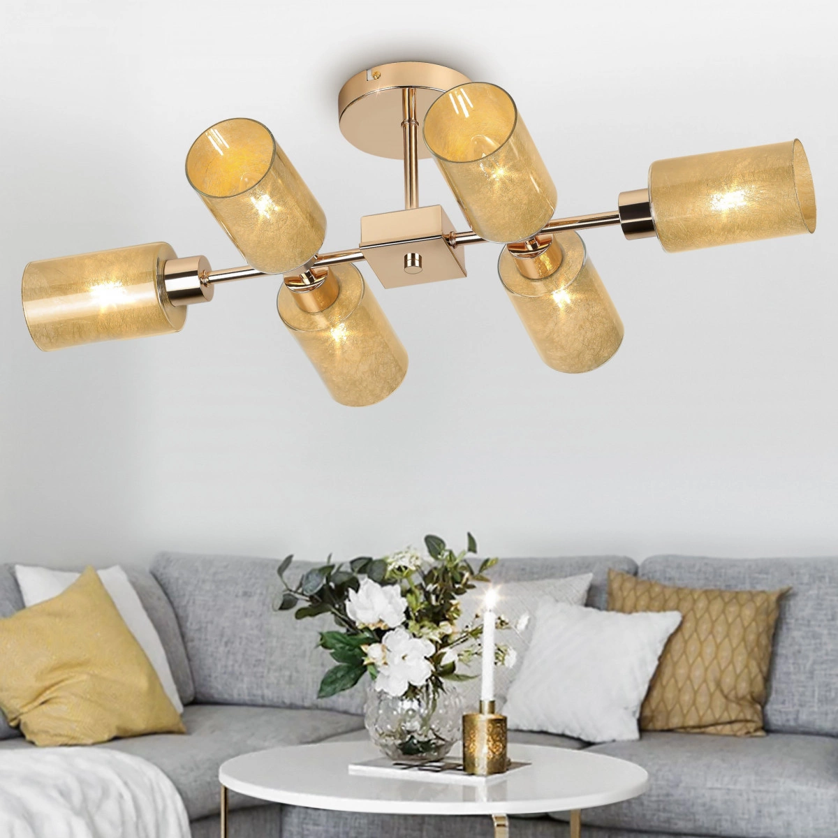 Мягкое теплое тонирование круглых плафонов люстры Katarine помогает создать в комнате уютную расслабляющую атмосферу. Шесть ламп Е14 мощностью 40 Вт равномерно осветят площадь от 18 м2. Эта модная люстра на потолок совместима как с обычными, так и со светодиодными лампочками.