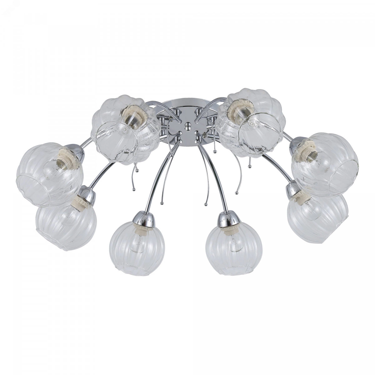 "Rivoli Veronica - большие люстры в гостиную с 8 прозрачными плафонами в форме цветочных бутонов. Изготовлены из прочного металла со стойким гальваническим покрытием и качественного фигурного стекла. Такие люстры потолочные дают много света за счет большого количества ламп и прозрачности плафонов. Освещаемая площадь этой красивой люстры - 24 м2. Размер - 720х720х230 мм. Стиль эффектной люстры на потолок Rivoli Veronica - модерн. Аккуратность оформления делает эти люстры универсальным решением как для традиционных, так и для современных интерьеров. Если вы сделали свежий ремонт, готовитесь к переезду или просто решили обновить обстановку, люстры Veronica - доступный и эффективный вариант. Они созданы итальянскими дизайнерами бренда Rivoli в рамках серии специальной ""Лайт""."