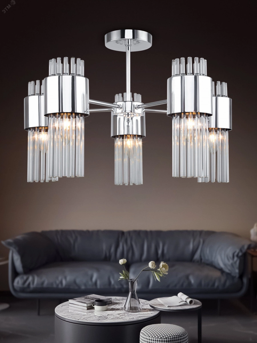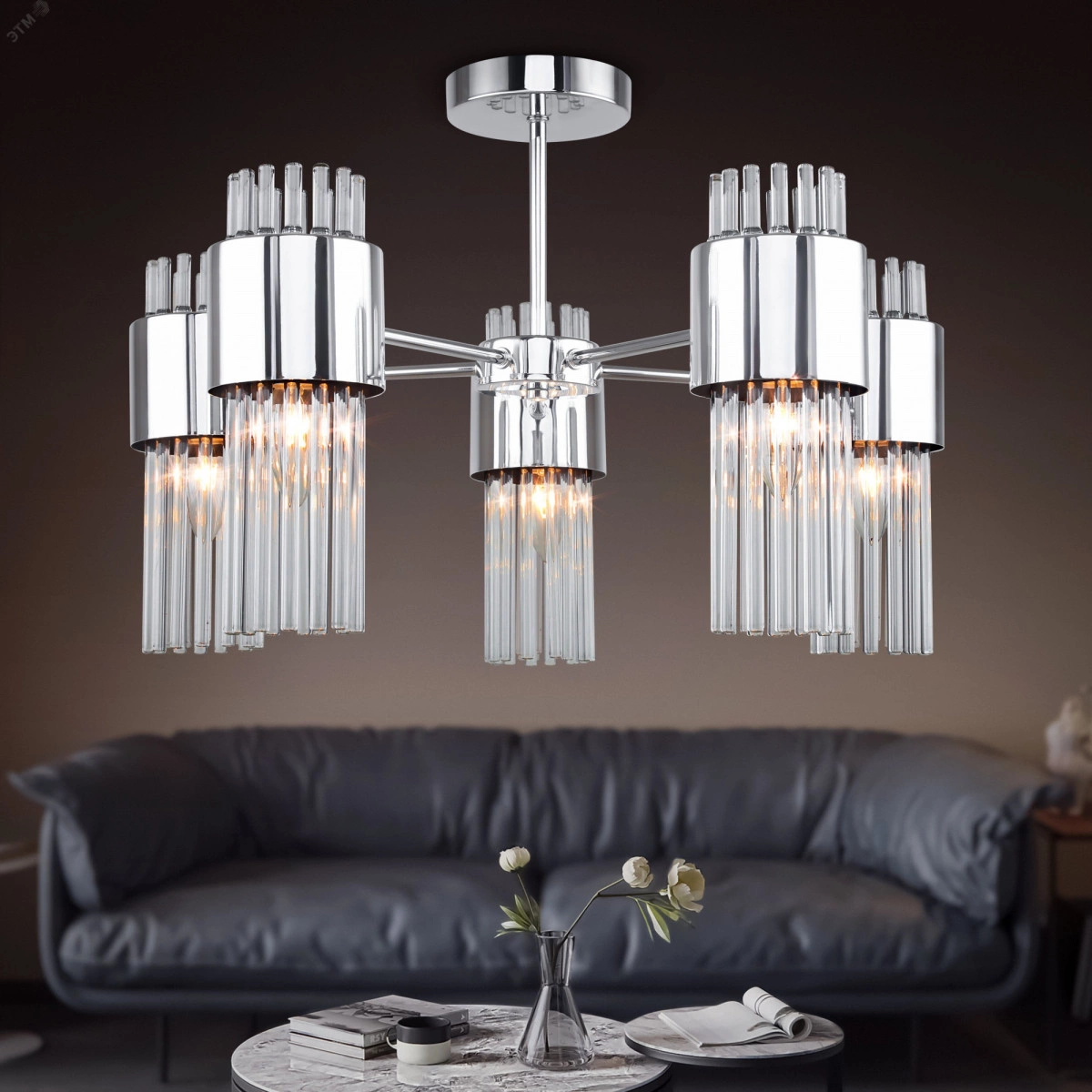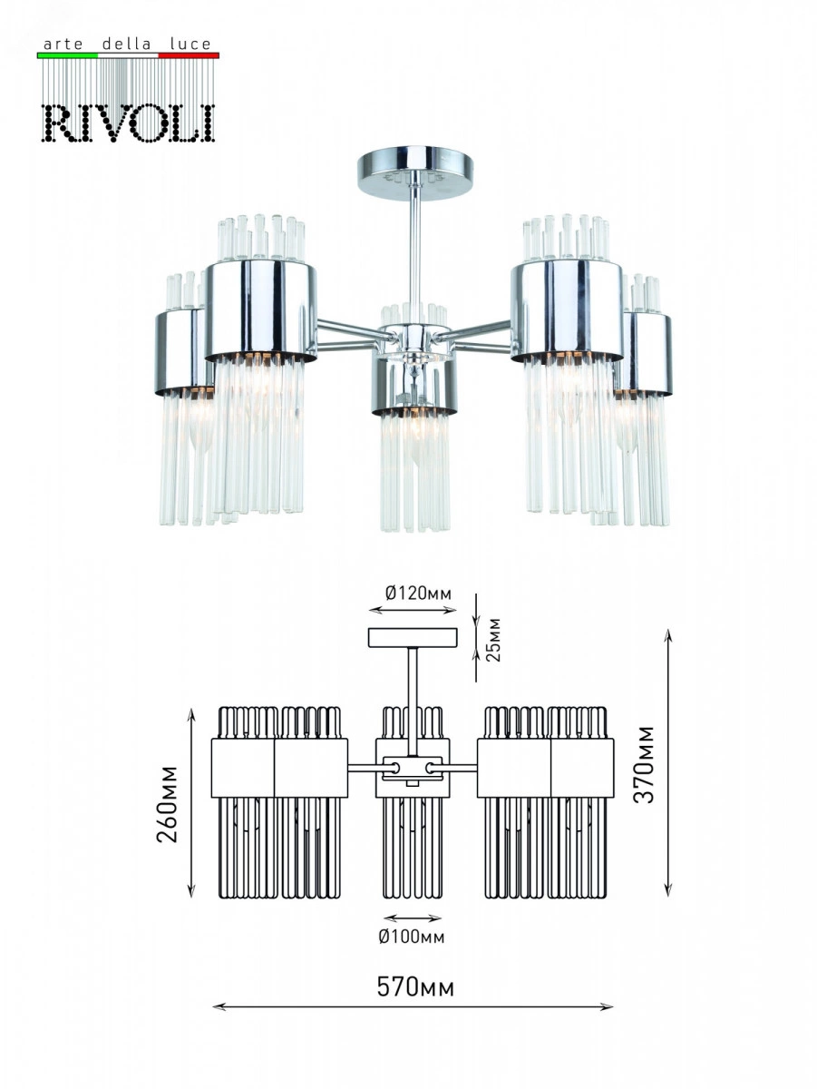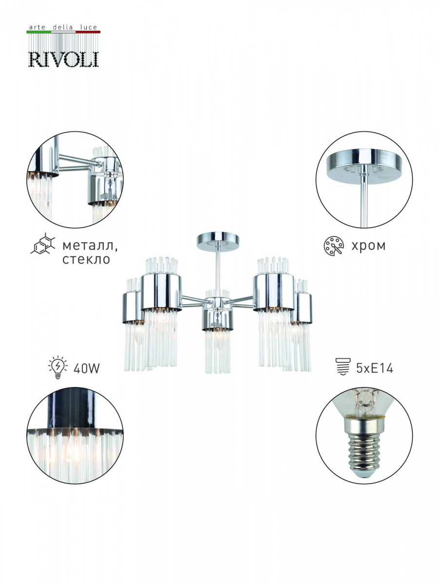 5-рожковая люстра на штанге в цвете хром, с трубчатыми стеклянными плафонами. Люстра потолочная применяется с 5 лампами Е14 мощностью 40 Вт, освещает площадь до 15 м2. Люстра с цилиндрическими плафонами из стекла будет удачно смотреться в гостиной, в спальне, на кухне, в кабинете, в загородном доме. Люстры и светильники коллекции Rivoli Deborah подходят для оформления пространств сегмента horeca - рестораны, кафе, гостиницы. Эти люстры потолочные заказывают в интерьеры театров, концертных залов, фойе общественных пространств. В коллекции Rivoli Deborah - люстра под 5 ламп - арт. 3148-305, люстра под 7 ламп - арт. 3148-307, светильник подвесной - арт. 3148-201, светильник настенный - арт. 3148-401.