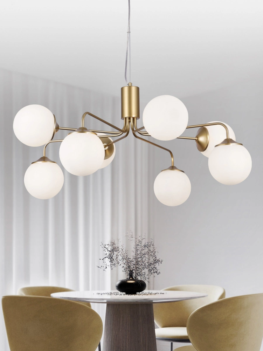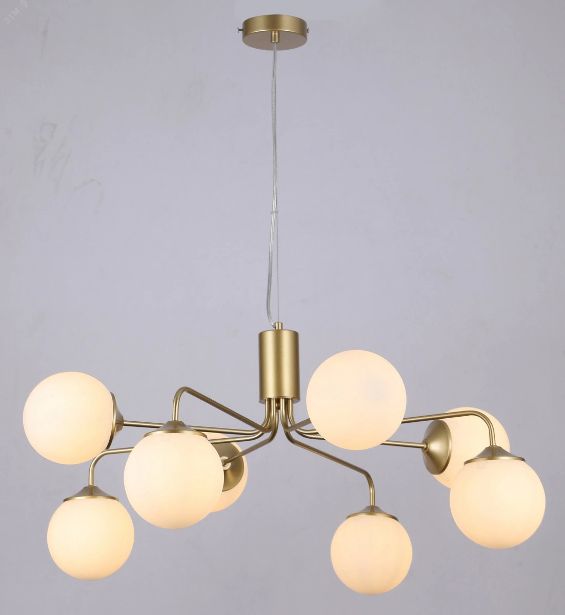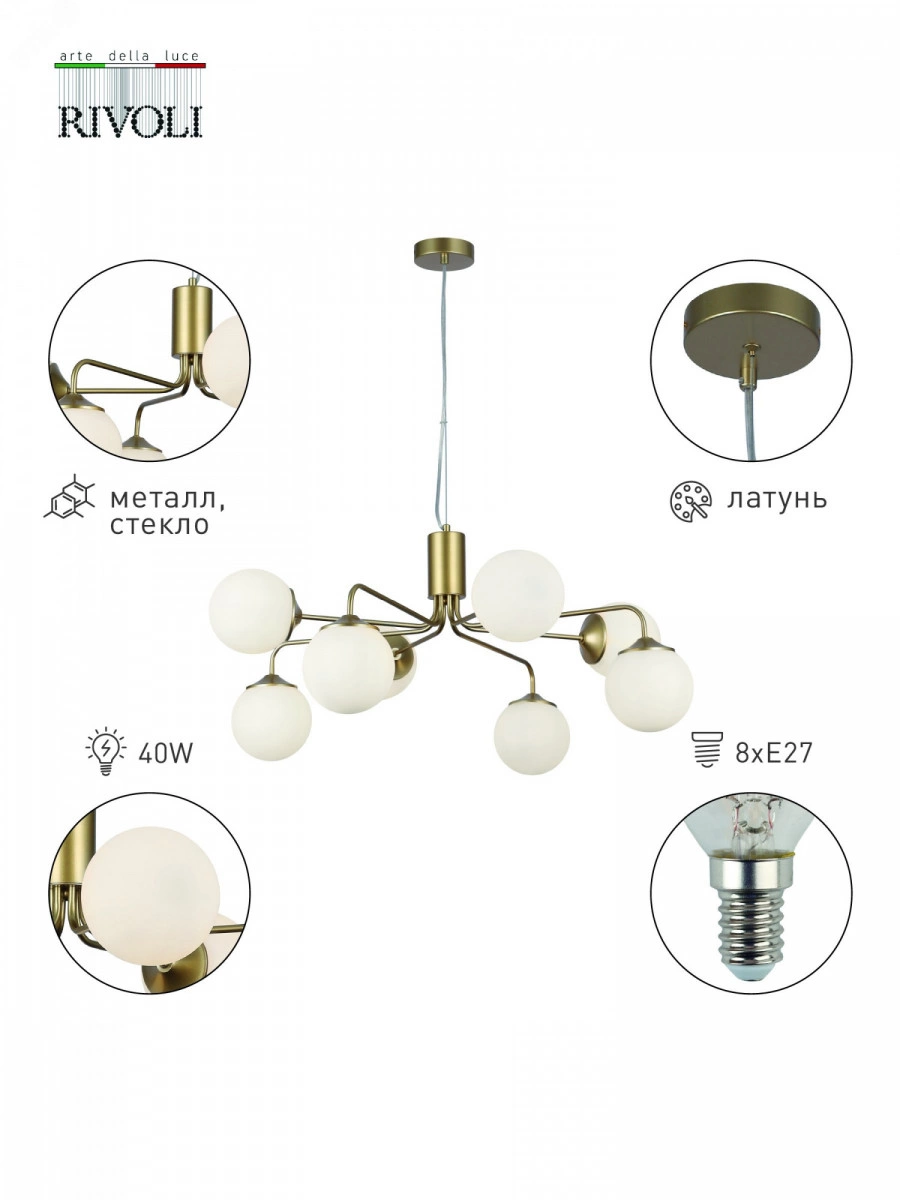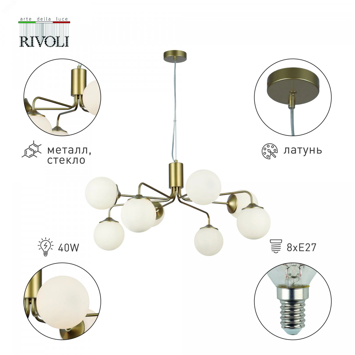 Люстра подвесная потолочная Rivoli Felicity с регулировкой высоты подвеса. Дизайнерская люстра на тросе имеет 8 плафонов и освещает площадь до 24 м2.
