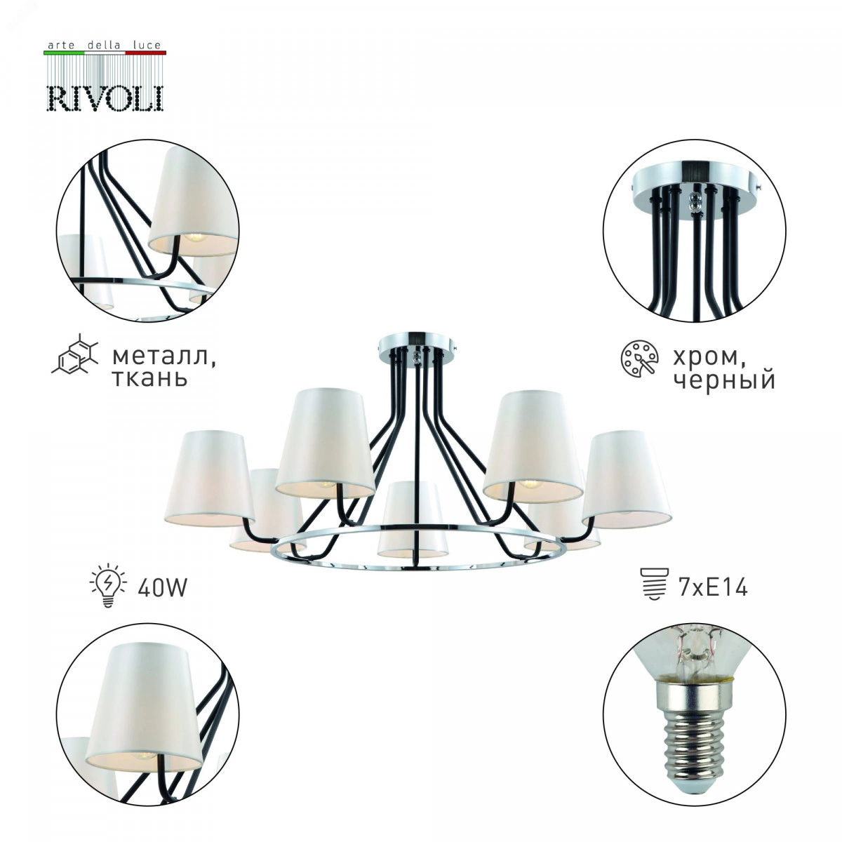 Полное описание: Люстра Florence 2086-307 7 х Е14 40 Вт классика