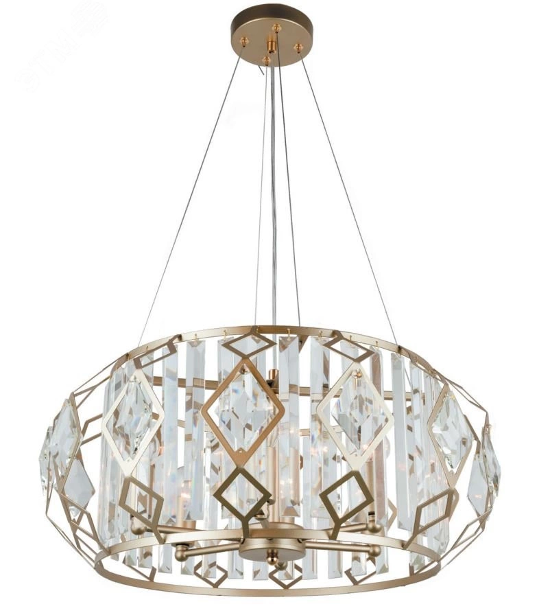 Элегантный круглый абажур большой подвесной люстры Maike сформирован декоративными металлическими ромбами и прозрачными хрустальными подвесками геометричной огранки. Изящная подвесная люстра Maike от итальянского бренда Rivoli станет стильной деталью вашего интерьера и создаст качественное освещение. Эта дизайнерская люстра потолочная из легкого прочного металла изготовлена методом высокоточной лазерной сварки и имеет стойкое покрытие красивого золотого цвета. Высота люстры Rivoli Maike на тросах регулируется. Можно заказать ее для помещений с любыми потолками. Такие подвесные люстры станут хорошим решением для размещения над столом, барной стойкой, рабочей столешницей, в зоне отдыха или чтения. Они освещают площадь 18 м2 и используются с 6 лампами Е14 40 Вт.