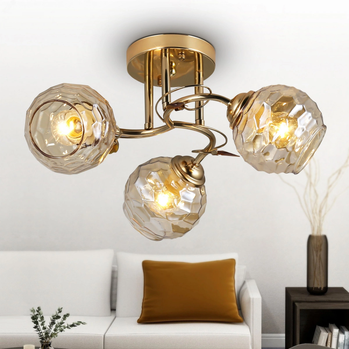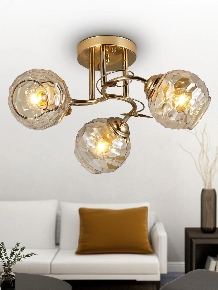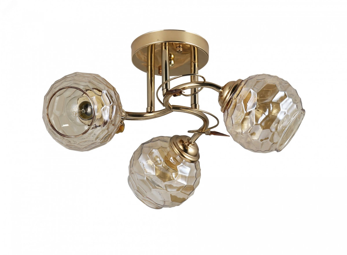 Коллекция Rivoli Ashley объединяет в себе красивые универсальные люстры с арматурой золотого цвета и фигурными стеклянными плафонами. Мягкое тонирование плафонов понравится людям, которые любят уютный, не слишком яркий свет. Люстры Ashley подойдут на низкий или средний потолок, применяются с лампами Е14 60 Вт. Надежная арматура с плавными линиями и декоративными металлическими веточками порадует даже самого требовательного покупателя. Данная люстра под 3 лампочки подходит для небольших гостиных или спален в сочетании с дополнительными источниками света. Освещаемая площадь такой люстры в спальню - 9 м2.