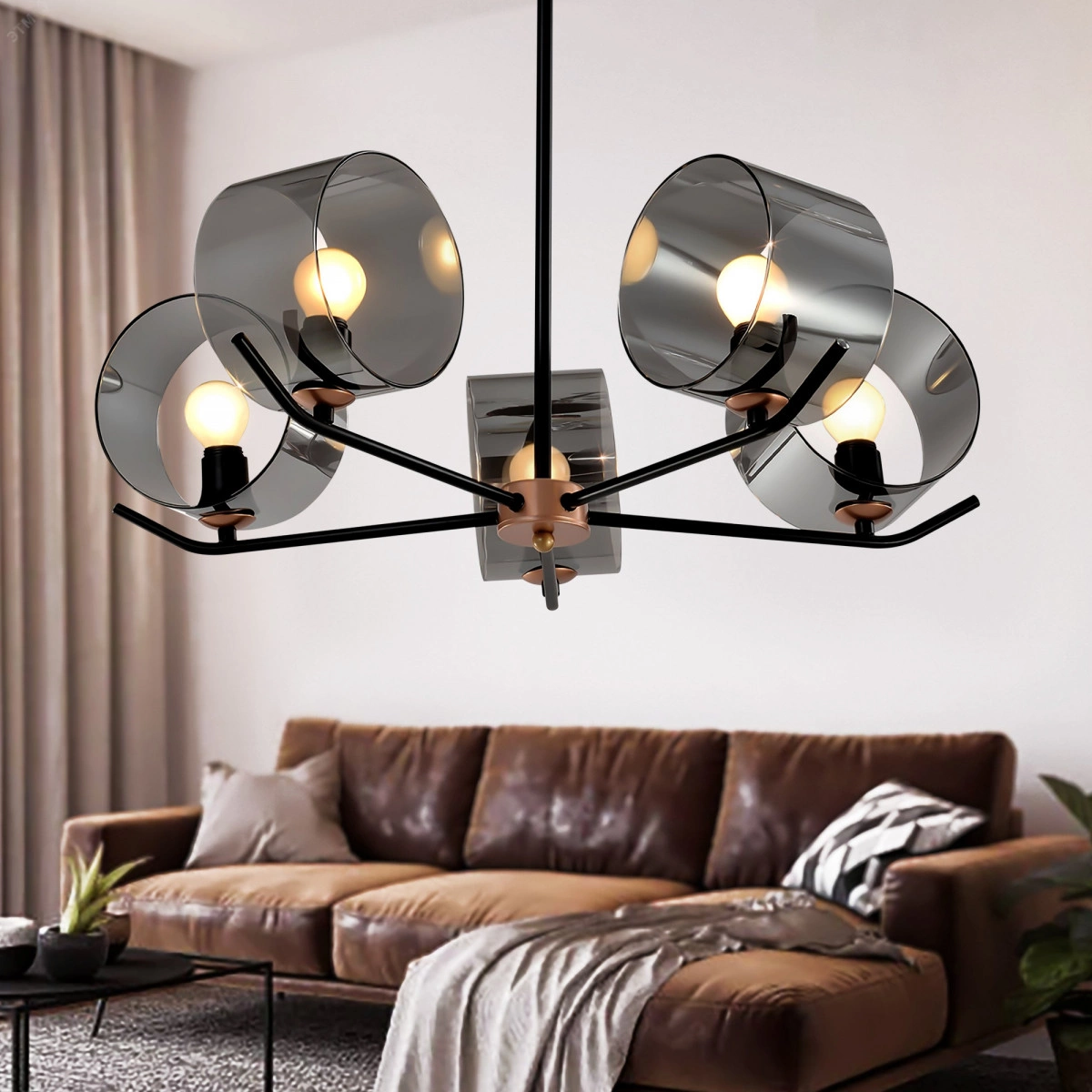 Люстры Rivoli Eurydice с пятью полыми цилиндрическими плафонами дымчатой тонировки. Оригинальная форма плафонов - отличительная особенность данной люстры от итальянских дизайнеров. Для люстры на потолок Eurydice Rivoli подходят лампы Е14 мощностью 40 Вт. Эти красивые и функциональные люстры отлично смягчают блики и прекрасно выглядят в интерьере, привлекая внимание и собирая положительные отзывы. Люстры потолочные Rivoli Eurydice удачны как для частного применения, так и для сегмента horeca - стоит купить в качестве люстры для гостиницы, люстры для отеля, люстры для ресторана, люстры для кафе. Лаконичная арматура люстры Eurydice сочетает в себе черную матовую основу и элементы трендового цвета меди. Люстры на кухню, люстры в гостиную, люстры в спальню Eurydice Rivoli помогают успешно создать интерьер в стиле модерн, лофт, современная классика, минимализм.