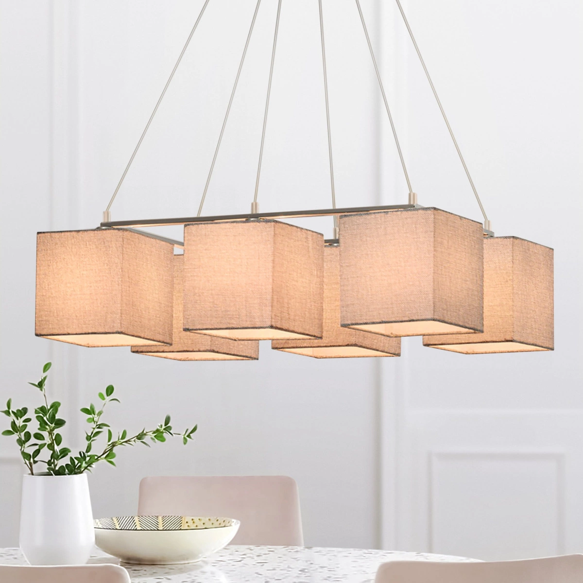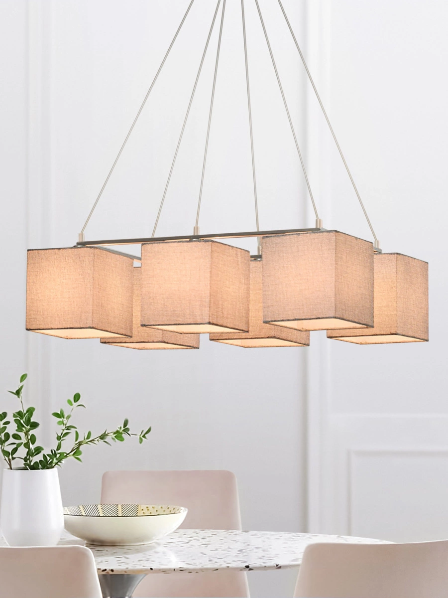 Rivoli Grendel - коллекция потолочных люстр от итальянских дизайнеров. Главная фишка данных люстр на потолок - геометричные тканевые плафоны квадратной формы. Люстры подвесные Grendel - идеальное решение на стандартный или высокий потолок. Выполненные в популярном стиле модерн, эти люстры потолочные отличаются лаконичностью оформления и качеством материалов. Они изготовлены из легкого прочного металла со стойким гальваническим покрытием, плафоны - из прочной абажурной ткани. Не выцветут, спустя годы будут выглядеть как новые. Для дизайна этих эффектных люстр в гостиную выбран теплый бежевый оттенок. Высоту люстры можно отрегулировать при монтаже. Размеры данной люстры с 6 плафонами - 680х400х850 мм. Люстры потолочные подвесные Rivoli Grendel помогут создать комфортное уютное пространство.