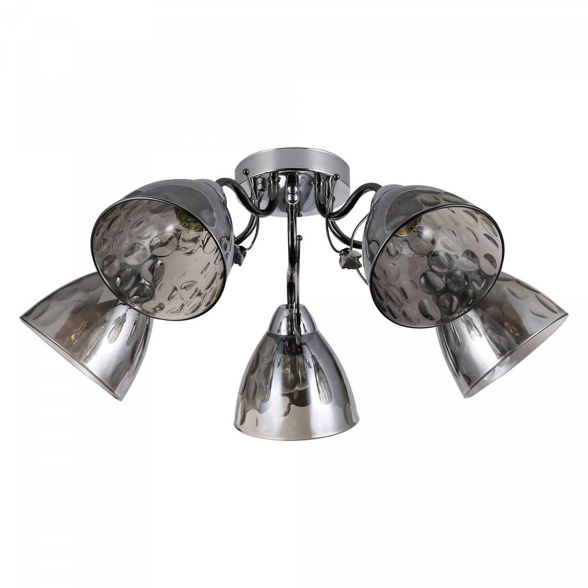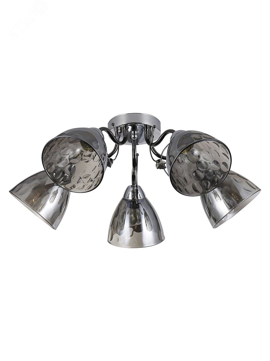 "Rivoli Jennifer - современная коллекция люстр с фигурными выдувными плафонами из дымчатого стекла и декоративными металлическими веточками. Люстры потолочные Jennifer очень красивы и созданы в актуальных трендах дизайна интерьеров. Арматура люстр на потолок Jennifer от итальянского бренда Rivoli окрашена стойким гальваническим методом в модные цвета - хром и ""черный жемчуг"". Серая цветовая гамма люстры поможет вам расставить в пространстве стильные акценты и оформить квартиру современно. Данная люстра под 5 ламп хорошо осветит площадь 15 м2. Спешите купить именно эту модель, если вы хотите преобразить гостиную, кухню, спальню."