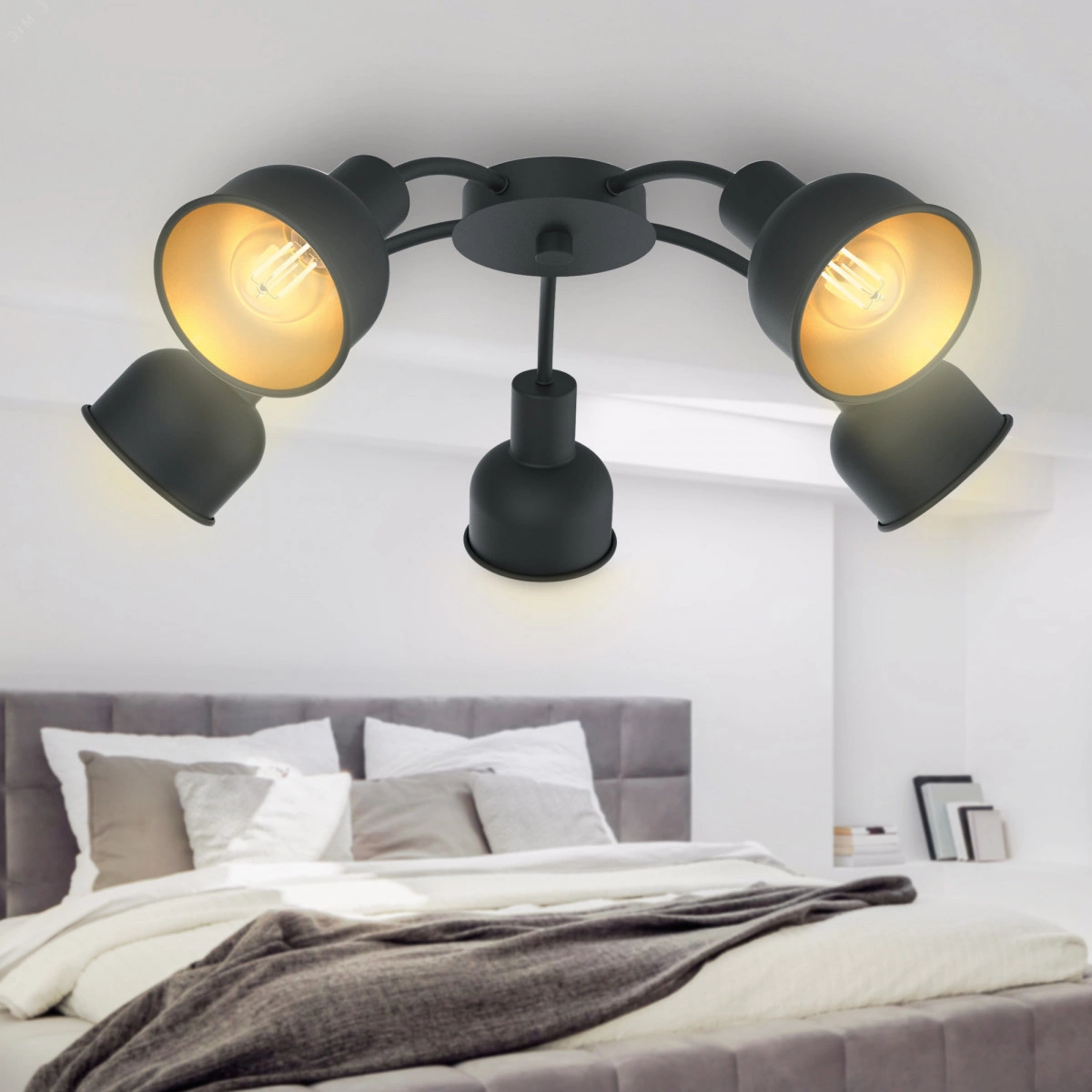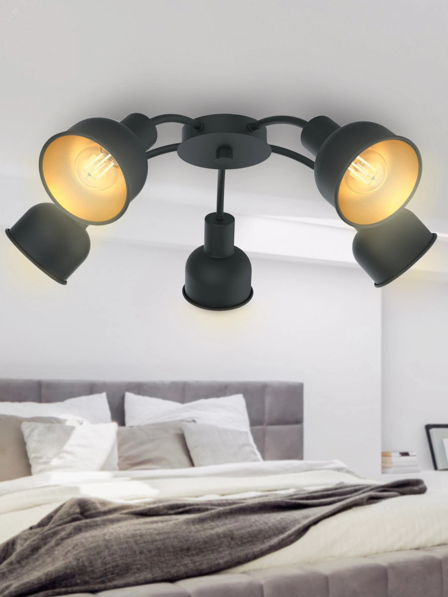 Rivoli Jessica - люстра на потолок с 5 трендовыми металлическими плафонами. Внешняя сторона плафонов имеет черное матовое покрытие, внутренняя - покрытие золотого цвета. Люстры потолочные Jessica - прекрасное интерьерное решение для популярного стиля лофт. Дизайн создан итальянским брендом Rivoli, известным в России за оптимальное сочетание цены и качества. Рекомендуемые источники света - Е14 мощностью 40 Вт. Размеры люстры - 510*510*165 мм. Освещаемая площадь - до 15 м2. Люстра из металла отличается прочностью и надежностью. Эффектное сочетание матового черного и золотого цветов поможет расставить в интерьере стильные акценты. Благодаря гальванизации окрашивания люстры потолочные Jessica защищены от царапин и выцветания. Прослужат долго, станут вашей практичной покупкой.