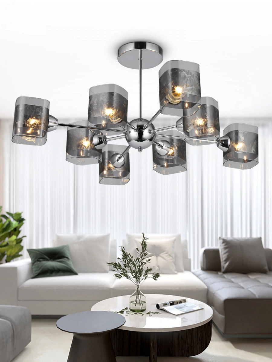 Rivoli Juanita - эффектные люстры потолочные в серо-серебристой цветовой гамме. Оригинальные стеклянные плафоны затонированы и отличаются нежным рисунком. Прочная металлическая арматура имеет футуристичные формы и гальванизирована в стильный цвет хром. Дымчатые плафоны и хромированная арматура удачно дополняют друг друга. Люстры Juanita - коллекция от итальянских дизайнеров. В нее входят люстры в гостиную под 6 и 8 ламп. Источники света для этих люстр - Е14 60 Вт. Купить люстры Juanita стоит для большинства современных интерьеров, они удивительно хорошо вписываются как в ультрамодные, так и в сдержанные пространства. С помощью данной люстры с 8 плафонами можно качественно осветить площадь 24 м2. Эта люстра подойдет для просторных пространств - гостиной, квартиры-студии, загородного дома.