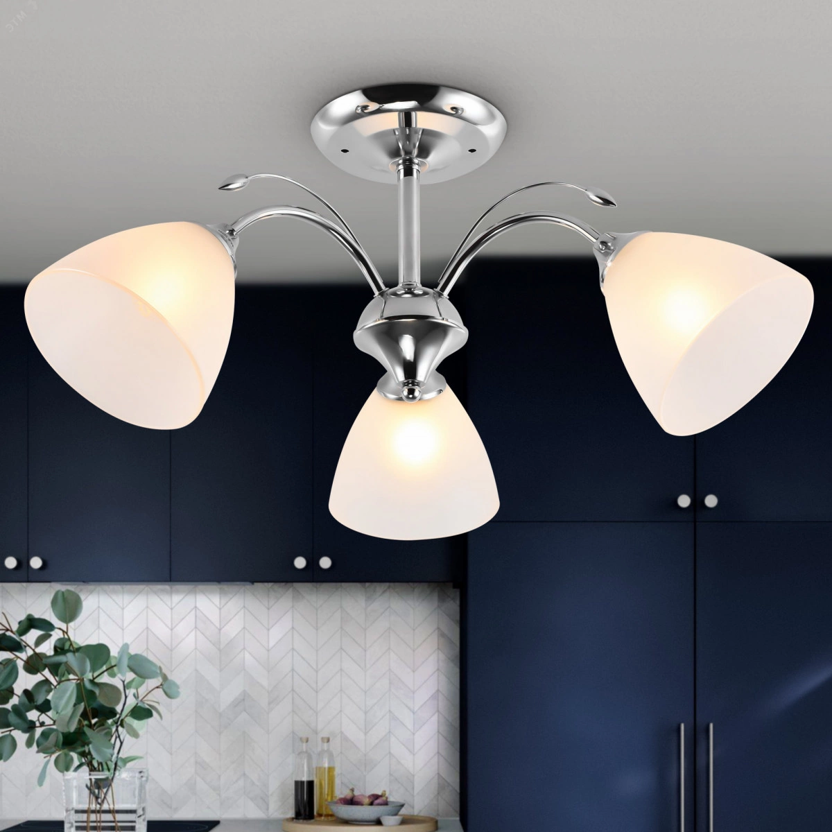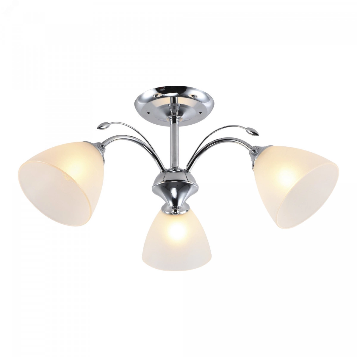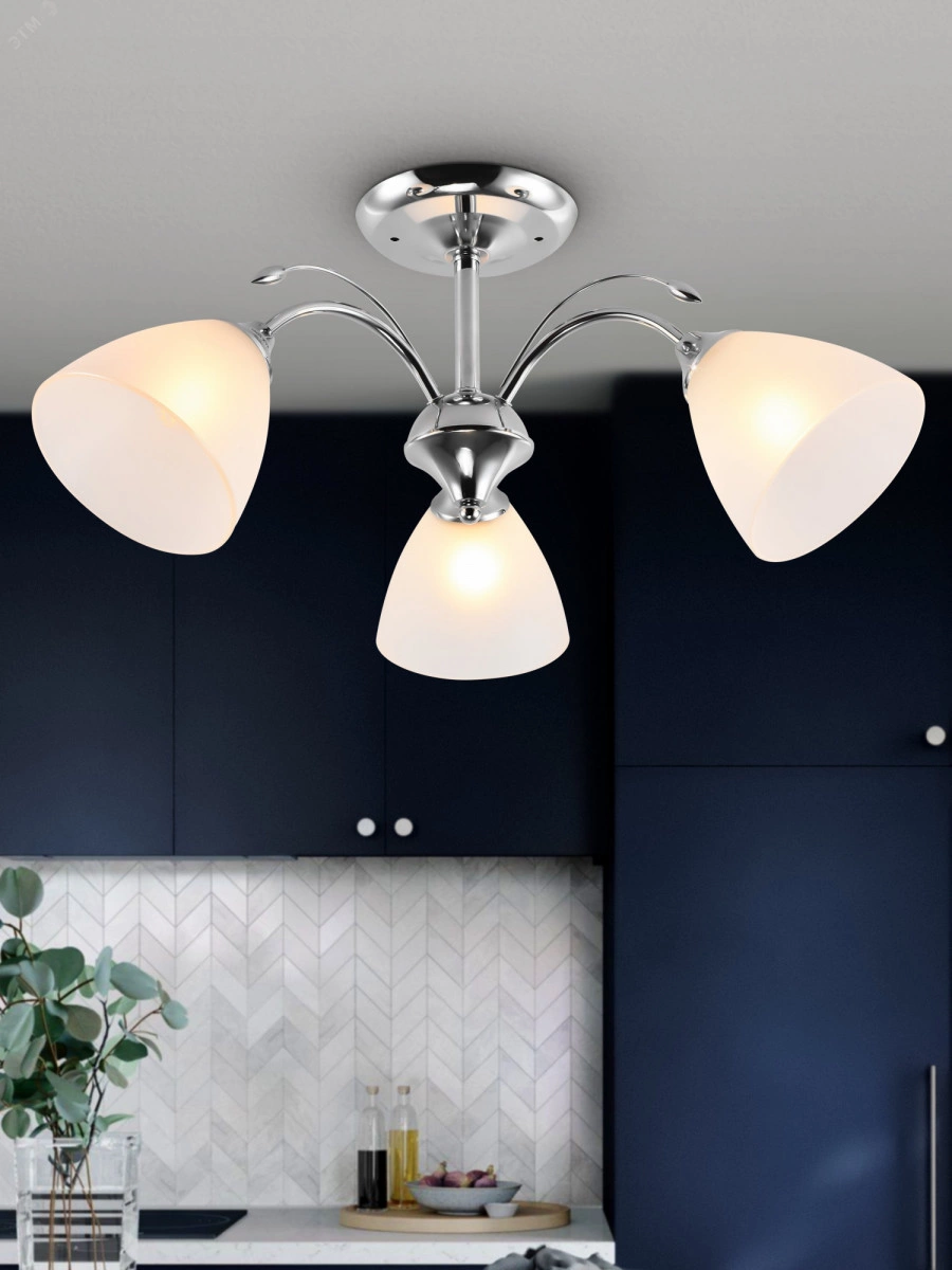 "Rivoli Liselotte - небольшая люстра на потолок с 3 стеклянными плафонами. Прочный металлический корпус люстры окрашен в модный цвет хром. Люстры потолочные Liselotte украшены декоративными металлическими веточками. Плафоны люстры имеют традиционную форму колокольчика и изготовлены из белого матового стекла. Люстры в гостиную Liselotte созданы итальянскими дизайнерами и входят в серию ""Лайт"". Это светлые красивые люстры европейского дизайна по доступной цене. Освещаемая площадь люстры на кухню Liselotte - 9 м2. Компактная и элегантная, она отлично впишется в квартиру со свежим ремонтом. Если вам хочется быстро и недорого обновить пространство, стоит купить эти современные люстры из качественных материалов. Прекрасно подойдут Liselotte и в качестве люстры в спальню - матовые плафоны мягко рассеивают свет, устраняют блики, делают освещение комфортным для глаз."