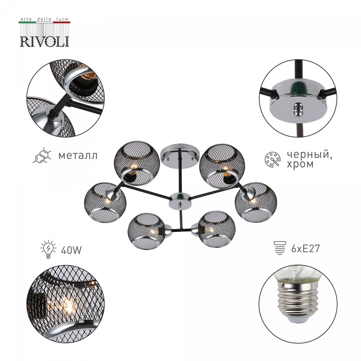 Люстра Rivoli Morrigan 9143-306 6 х Е27 40 Вт модерн