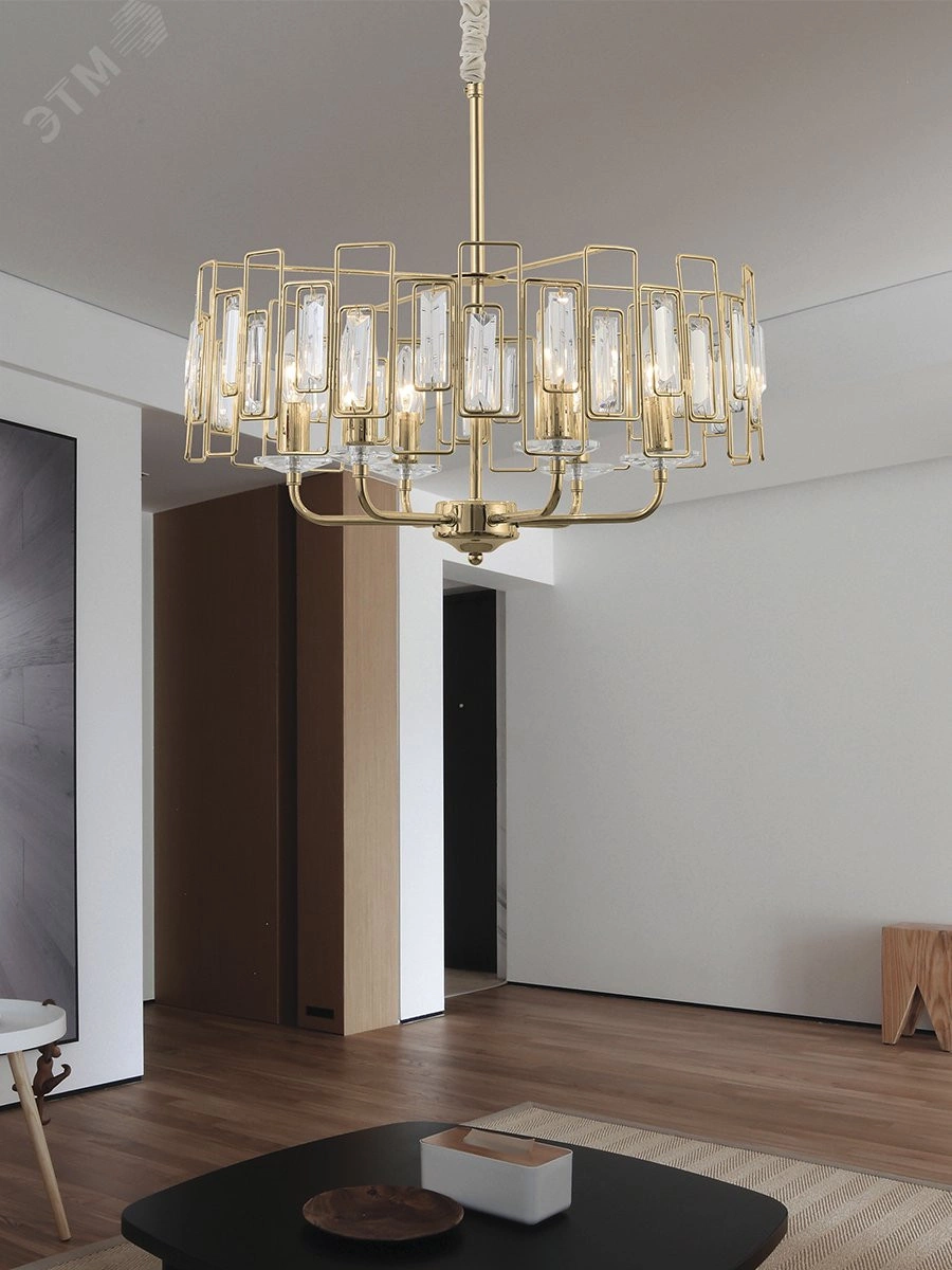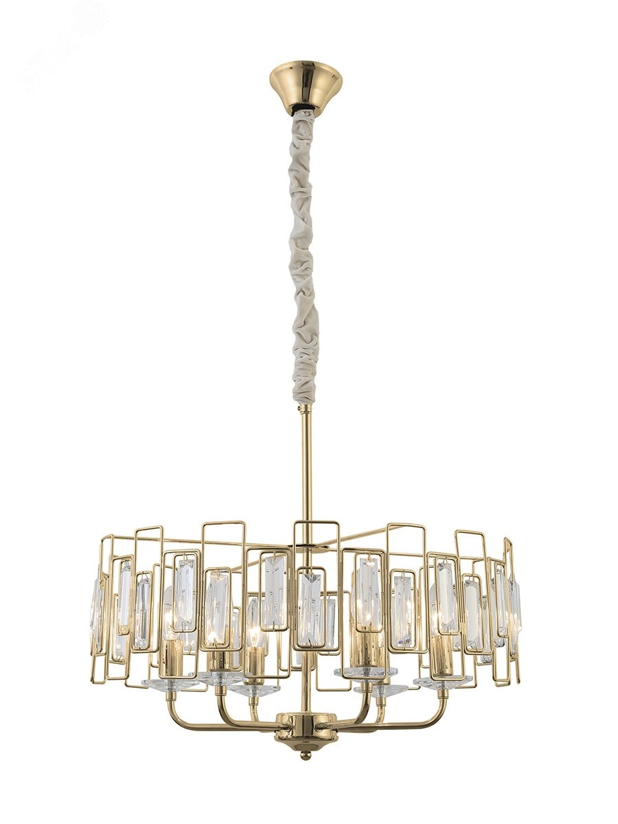 Rivoli Waltraud - уникальная хрустальная люстра в модном современном исполнении. Крупные декоративные элементы из чистейшего прозрачного хрусталя расположены в индивидуальных прямоугольных ячейках из металла золотого цвета. Абажур люстры (диаметр - 560 мм) формируют канделябры трендовой выверенной формы. Хрусталь подчеркивает красоту излучаемого люстрой света.  Освещаемая площадь люстры в гостиную Rivoli Waltraud - 18 м2. Применяется в 6 лампами Е14 мощностью 40 Вт. Подвесные люстры Waltraud хороши для высоких потолков, для просторных помещений в разных стилях - классический, замковый, современный, модерн. Люстры в спальню Rivoli Waltraud созданы итальянскими дизайнерами. Высоту подвеса легко отрегулировать при монтаже. Металл данной современной люстры имеет стойкое гальваническое покрытие, сохраняющее красивый золотой оттенок корпуса на долгие годы использования.