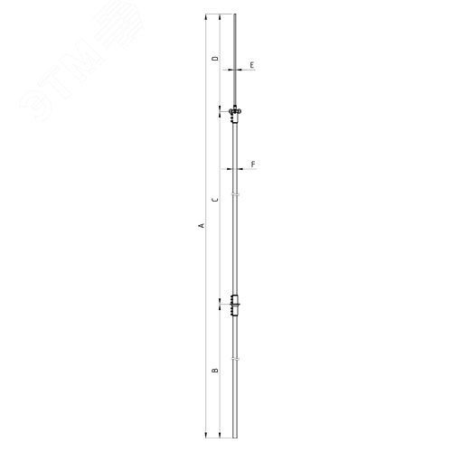 Молниеприемная мачта применяется для защиты оборудования, выступающего над уровнем кровли, от удара молнии. Мачта устанавливается на пятиноге на бетонных основаниях. Общая длина мачты - 8000 мм. Мачта является сборной, состоит из нескольких труб разного диаметра и длины. Логистическая длина - 4280 мм. Материал труб - нержавеющая сталь, материал наконечника - алюминий.
