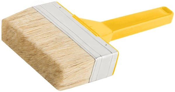 Для работы со всеми видами лакокрасочных материалов. Неразъемное крепление ручки. Выемка на ручке для закрепления макловицы на ведре, баночке для краски и т.д. Материал - натуральная светлая щетина, пластиковая ручка.