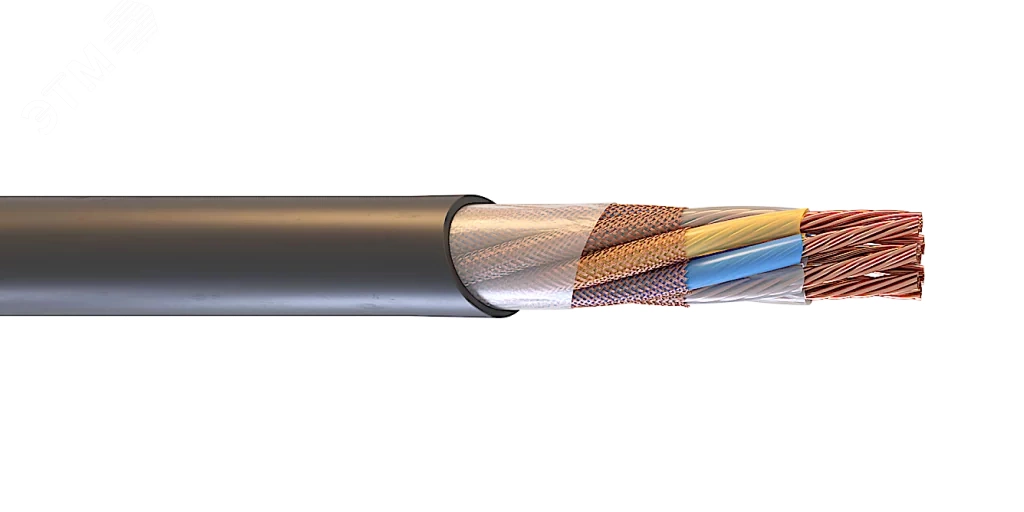 Кабель с медными экранированными жилами с изоляцией из полиэтилена, в ПВХ оболочке, пониженной пожароопасности с пониженной степенью газовыделения и дымовыделения, в общем экране из медных луженых проволок.