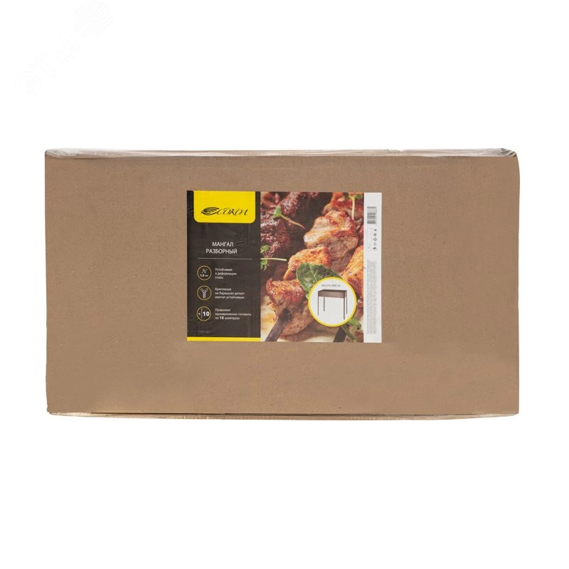 Компактный разборный мангал СОКОЛ изготовлен из стали увеличенной толщины (1,5 мм), поэтому не подвергается тепловым деформациям от углей и дров. Сборка и установка мангала производится вручную без использования специальных инструментов. На стенках жаровни размещены специальные прорези, которые позволяют разместить до 10 шампуров. Предусмотрены отверстия для интенсивного горения. Общая высота ножек составляет 700 мм. Жаровня размером 700х350 мм и глубиной 137 мм позволяет разместить шампуры и получить порцию блюда, рассчитанную на небольшую компанию. Конструкция фиксируется гайками типа «барашек», которые входят в комплект. В разобранном виде мангал не занимает много места, легко помещается в багажник автомобиля. Поставляется в картонной коробке, дополненной удобной ручкой для транспортировки.
