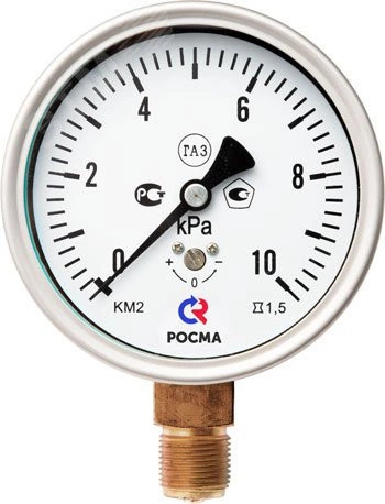 Манометр для измерения низких давлений газов радиальный КМ-22Р 0-25kРа 1/2' кл.1.5