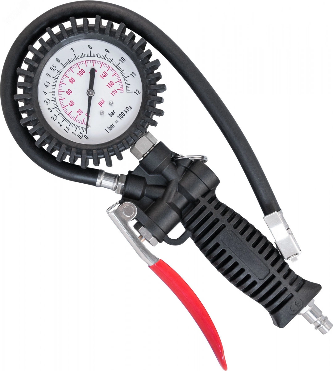 Манометр для шин TНORVIK применяется для контроля давления и подкачки при обслуживании пневматических шин колесных транспортных средств, строительной и сельскохозяйственной техники в диапазоне рабочего давления от 0 до 12 bar (12,24кгс/смкв.), персоналом, имеющим соответствующую квалификацию, знакомым с правилами техники безопасности, условиями эксплуатации и навыками работы с инструментом подобного типа. Изделие укомплектовано аналоговым стрелочным манометром класса 2.5 ГОСТ 2405-88, снабженного механизмом деформационного типа.