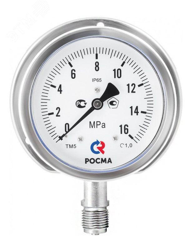 Манометр коррозионностойкий выполнен полностью из нержавеющей стали. Применяется для измерения давления агрессивных жидких и газообразных, не вязких и не кристаллизующихся измеряемых сред с температурой до 200 градусов. Эти промышленные манометры могут использоваться в условиях агрессивной окружающей среды, повышенной вибрации и при измерении переменного давления. Повышенная устойчивость к воздействию окружающей среды — степень защиты приборов IP65. При измерении давления с высокими динамическими нагрузками, прибор необходимо заполнить глицерином или силиконом. Область применения – теплоснабжение, водоснабжение, горнодобывающая промышленность, нефтехимическая промышленность, энергетика, машиностроение.