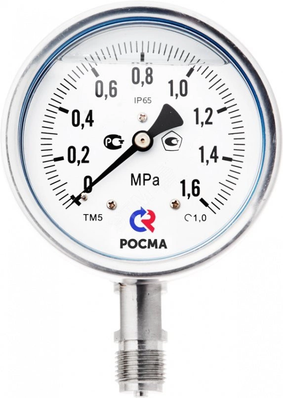 Манометр коррозионностойкий выполнен полностью из нержавеющей стали. Применяется для измерения давления агрессивных жидких и газообразных, не вязких и не кристаллизующихся измеряемых сред с температурой до 200 градусов. Эти промышленные манометры могут использоваться в условиях агрессивной окружающей среды, повышенной вибрации и при измерении переменного давления. Повышенная устойчивость к воздействию окружающей среды — степень защиты приборов IP65. При измерении давления с высокими динамическими нагрузками, прибор необходимо заполнить глицерином или силиконом. Область применения: теплоснабжение, водоснабжение, горнодобывающая промышленность, нефтехимическая промышленность, энергетика, машиностроение.