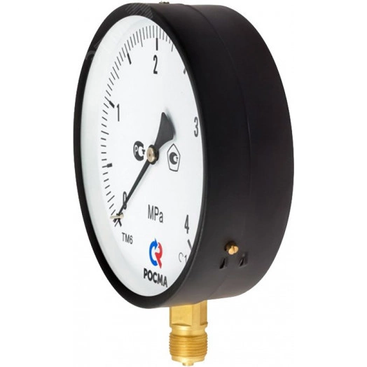 Манометр стандартный используется для измерения избыточного, вакуумметрического давления неагрессивных к медным сплавам жидких и газообразных, не вязких и не кристаллизующихся сред с температурой до 150 градусов. Корпус манометров в стандартном исполнении выполнен из стали, механизм — из латунного сплава. Принцип действия манометров основан на зависимости деформации чувствительного элемента от измеряемого давления. В качестве чувствительного элемента используется трубка Бурдона. Под воздействием измеряемого давления свободный конец трубки перемещается и с помощью специального механизма вращает стрелку манометра. Область применения: все отрасли промышленности, включая теплоснабжение, водоснабжение, вентиляцию и машиностроение.