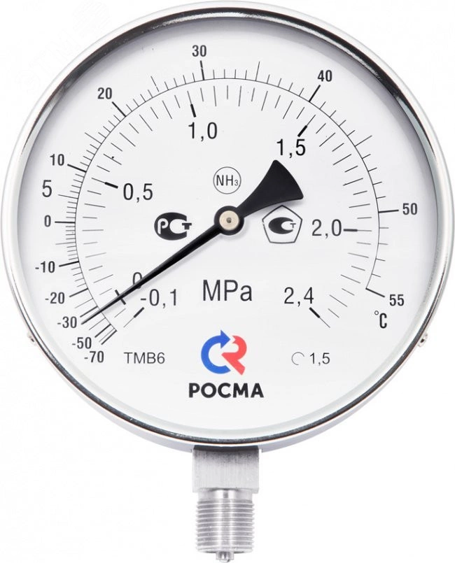 Манометр ТМ-611Р.00(0-1МРа)/(-30-+25) М20х1.5 1.5.NH3 аммиачный радиальный двойная шкала